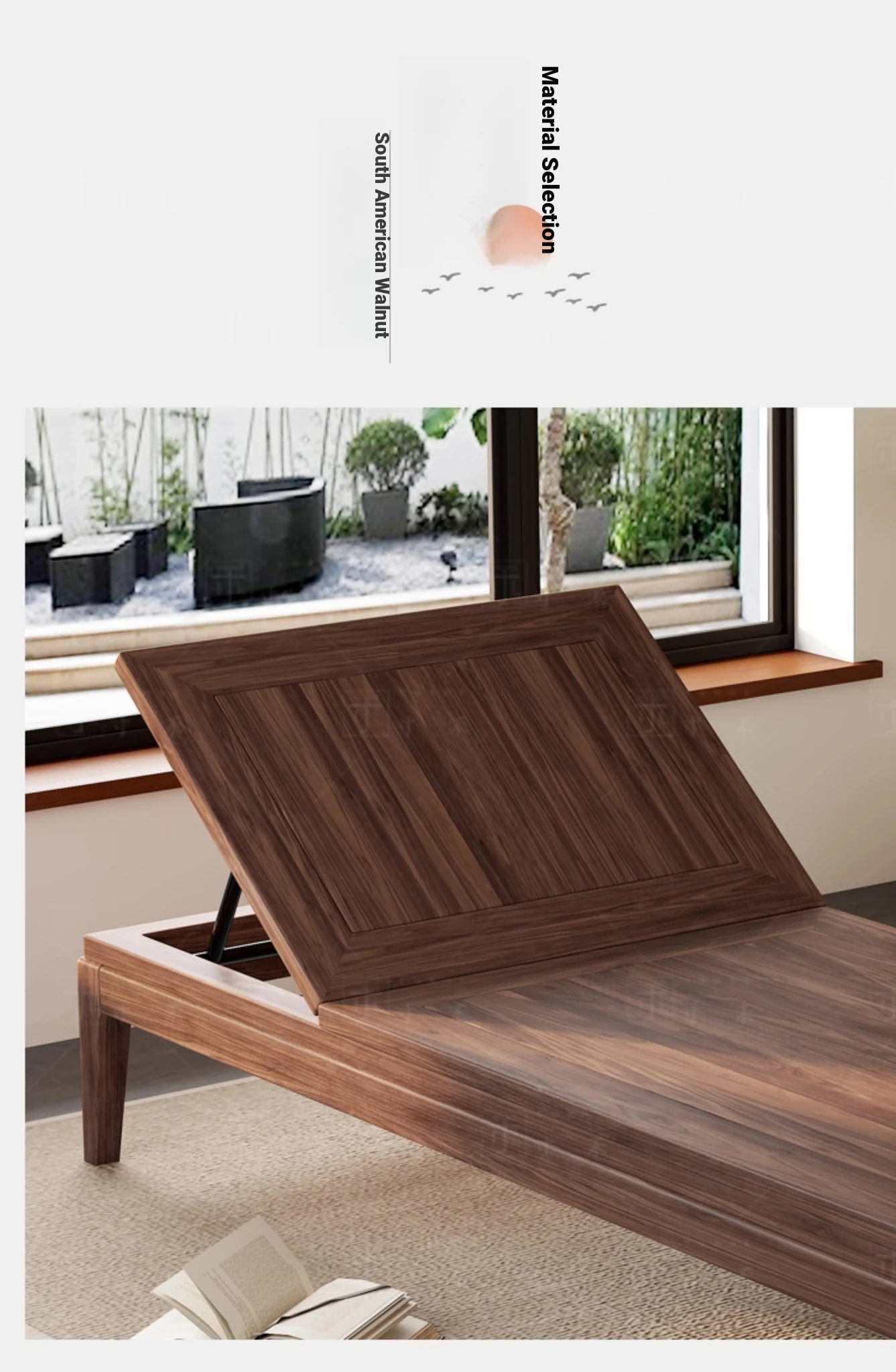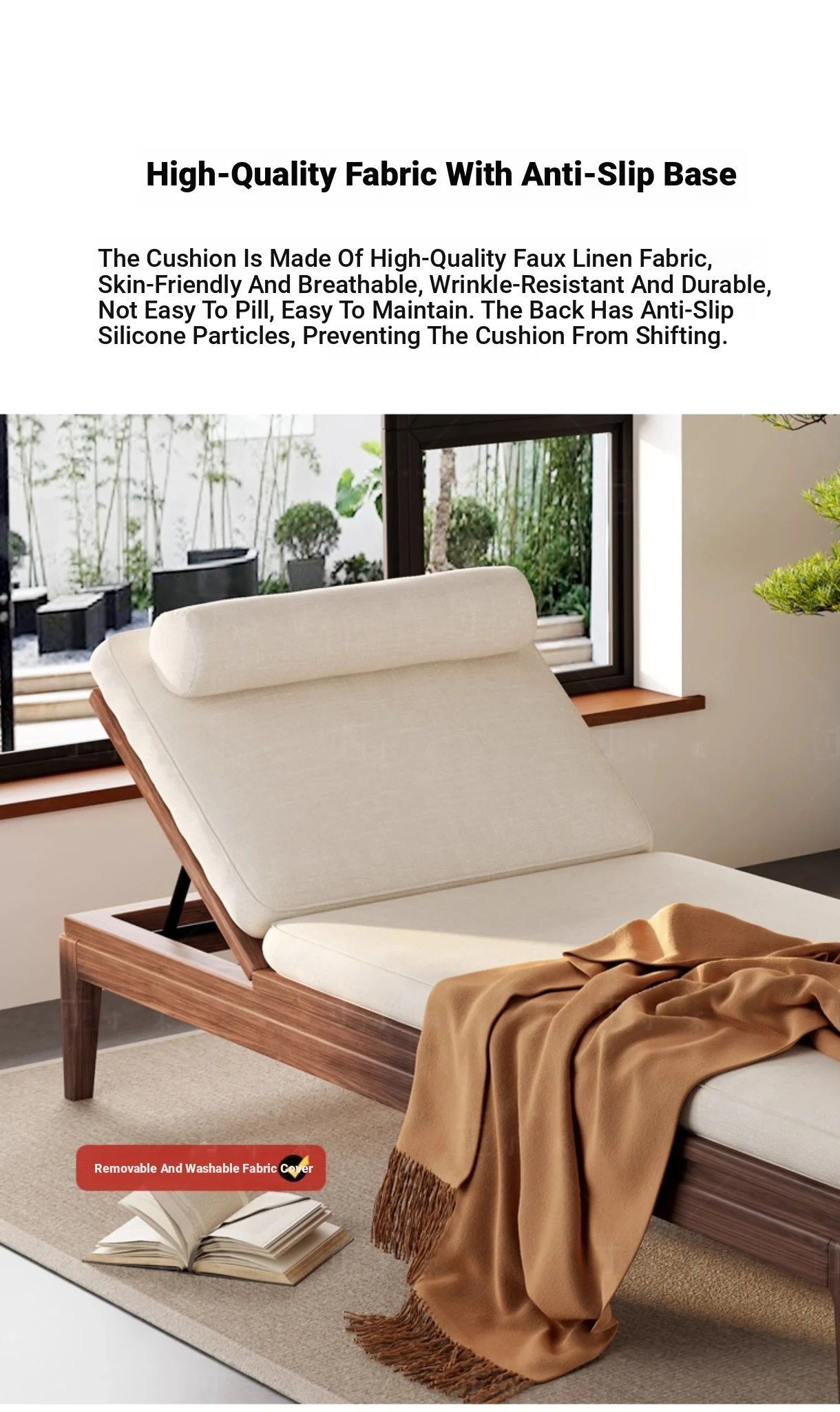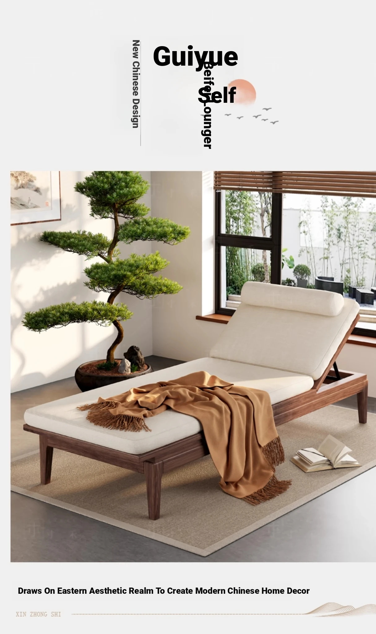South American Walnut New Chinese Style Foldable Solid Wood Chaise Lounge Sofa Bed - Ideal for Relaxation in Bedrooms and Living Rooms
