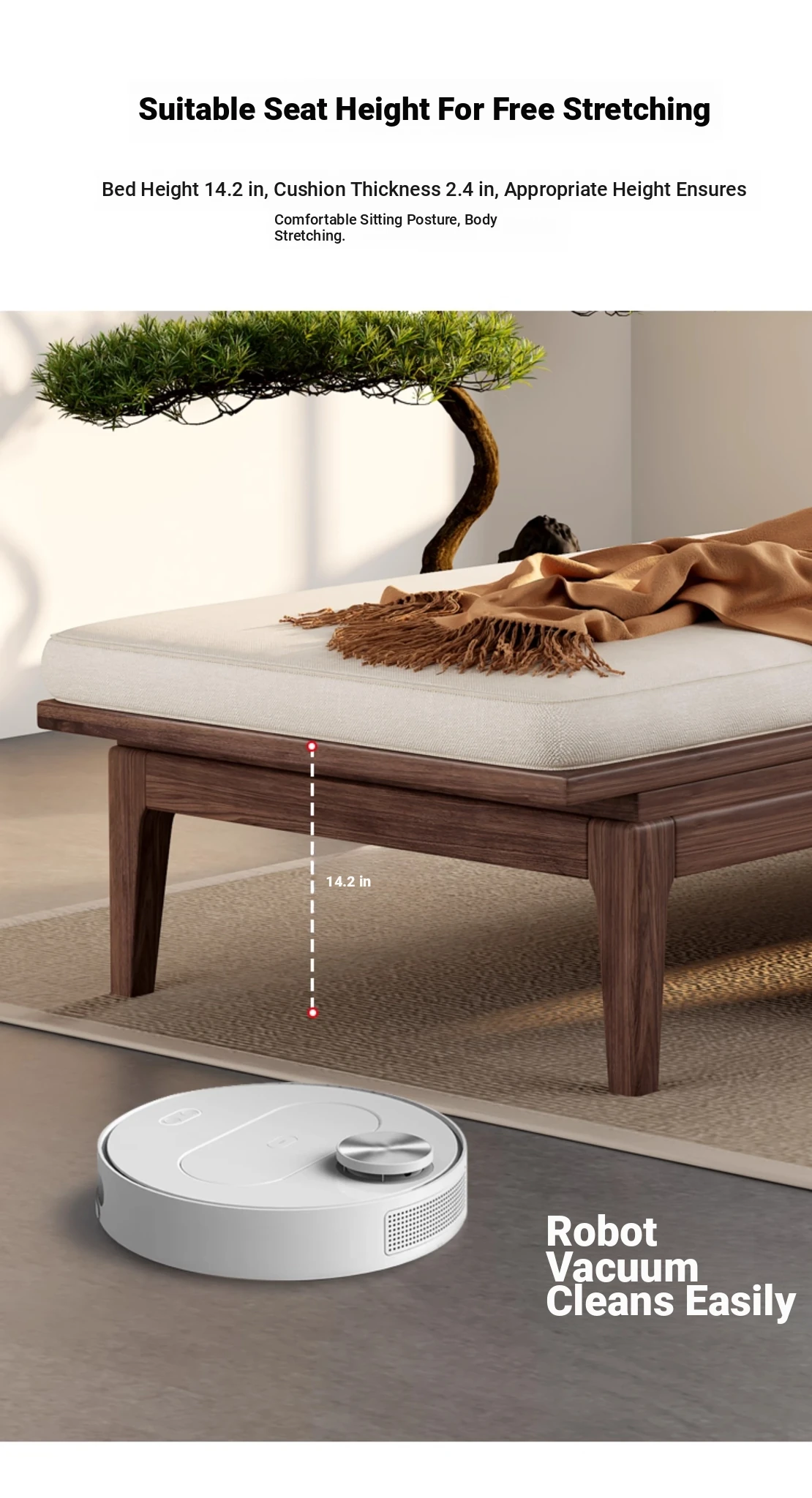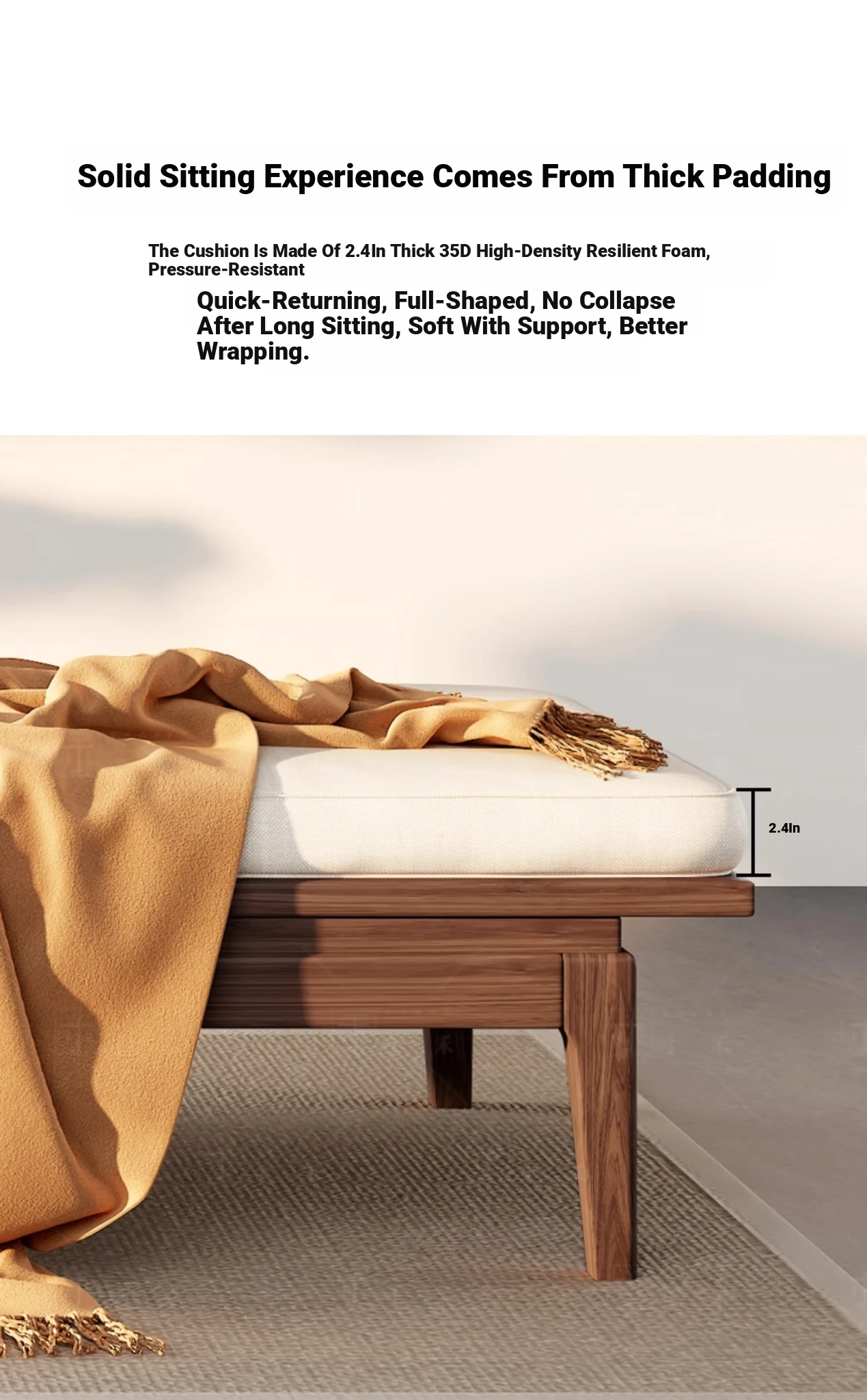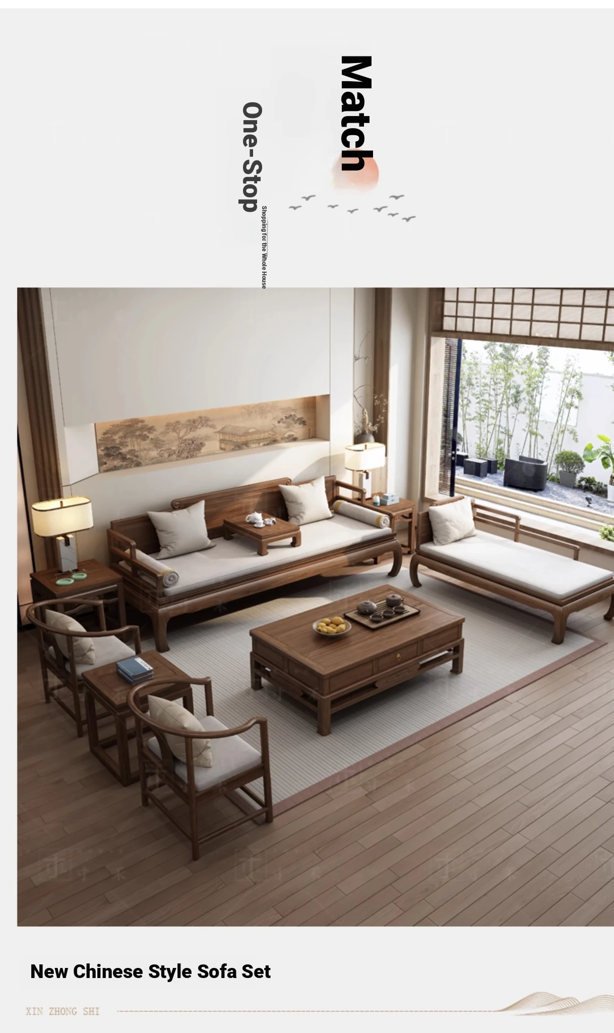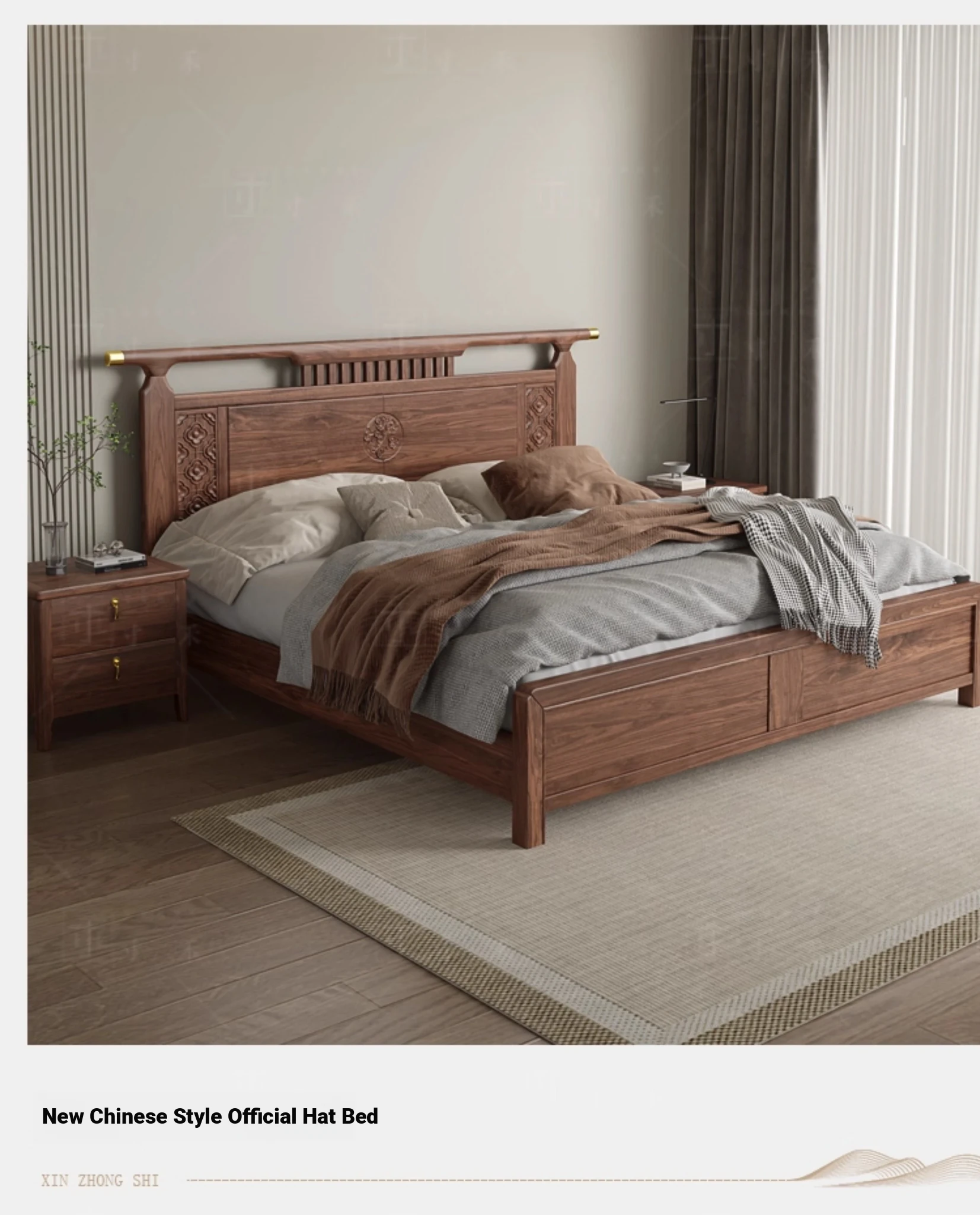 South American Walnut New Chinese Style Foldable Solid Wood Chaise Lounge Sofa Bed - Ideal for Relaxation in Bedrooms and Living Rooms