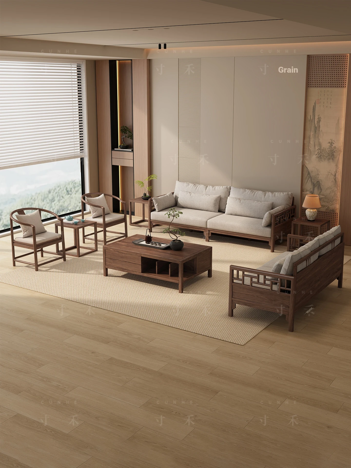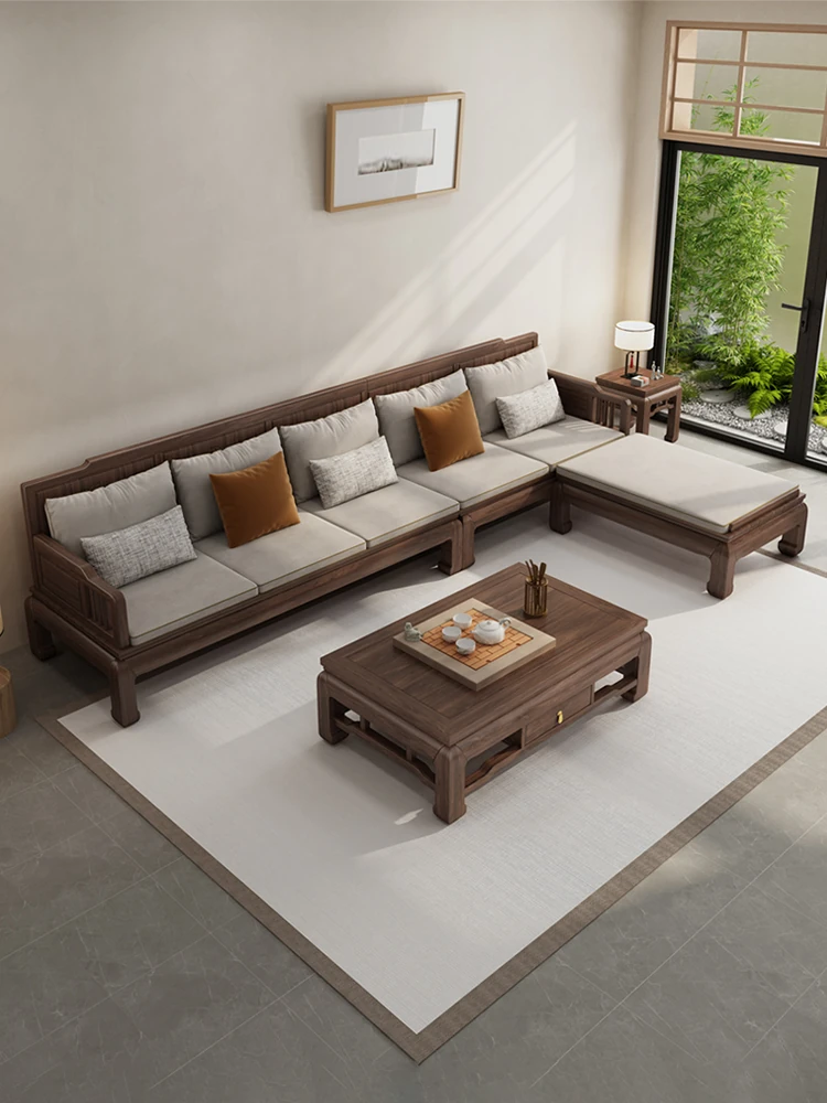 South American Walnut New Chinese Style Solid Wood Sofa Set for Small Living Rooms - 2025 Latest Design for Home and Self-Built Houses