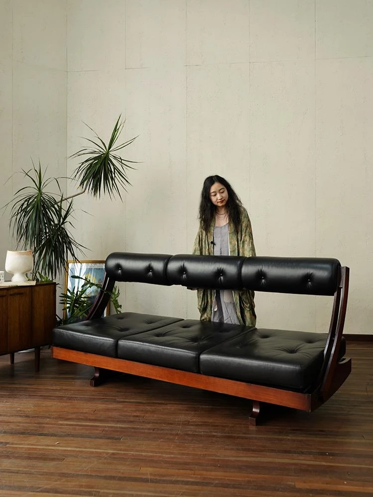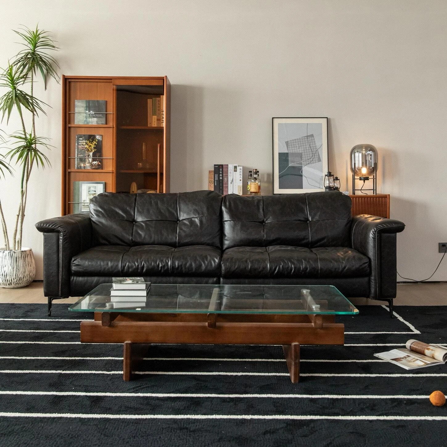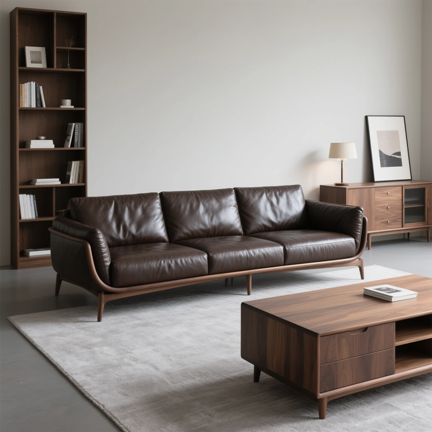 Modern Minimalist Black Walnut Sofa for Living Room - New Arrivals, Solid Wood Frame, Genuine Leather, Luxury High-End Furniture