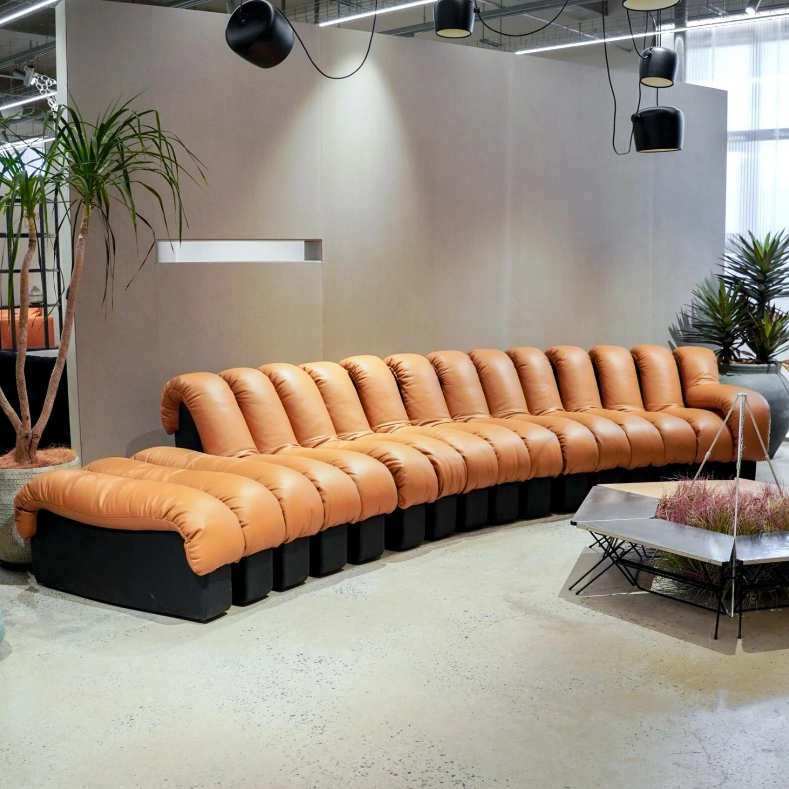 Vintage-style DS600 Minimalist Serpentine Sofa - S-Shaped Curved Velvet Leather Sofa for Villas, Featuring Unlimited Extension Modules for Customizable Comfort