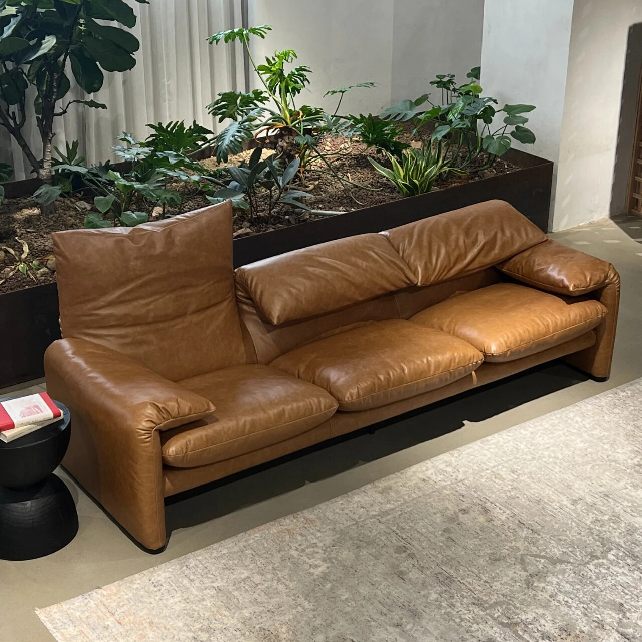 Vintage Maralen Leather Sofa - Retro Waxed Finish, Designer Lounge Chair for Living Room, Perfect for Relaxing in Your Cigar Bar