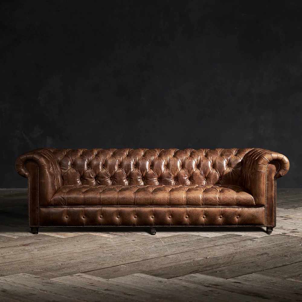 Vintage Waxed Leather Patton Sofa - Retro French Style Living Room Sofa for Hotels & Lounges - Timeless Charm & Comfort Perfect for Your Space