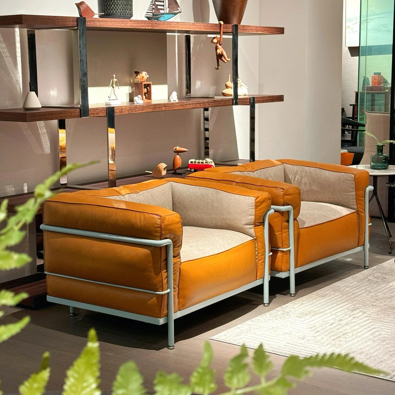 Vintage LC3 Waxed Leather Sofa - Retro Designer Single Chair for Living Room, French Style Mid-Century Modern Armchair, Perfect for Cozy Spaces