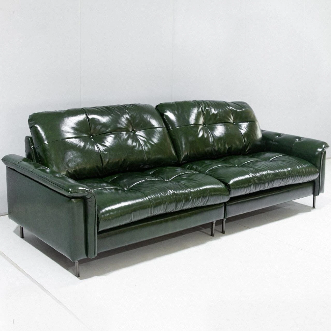 Vintage Style Green Oil Wax Leather Pull-Button Sofa - Designer 3-Seater for Living Room, Perfect for Villas and Spacious Apartments