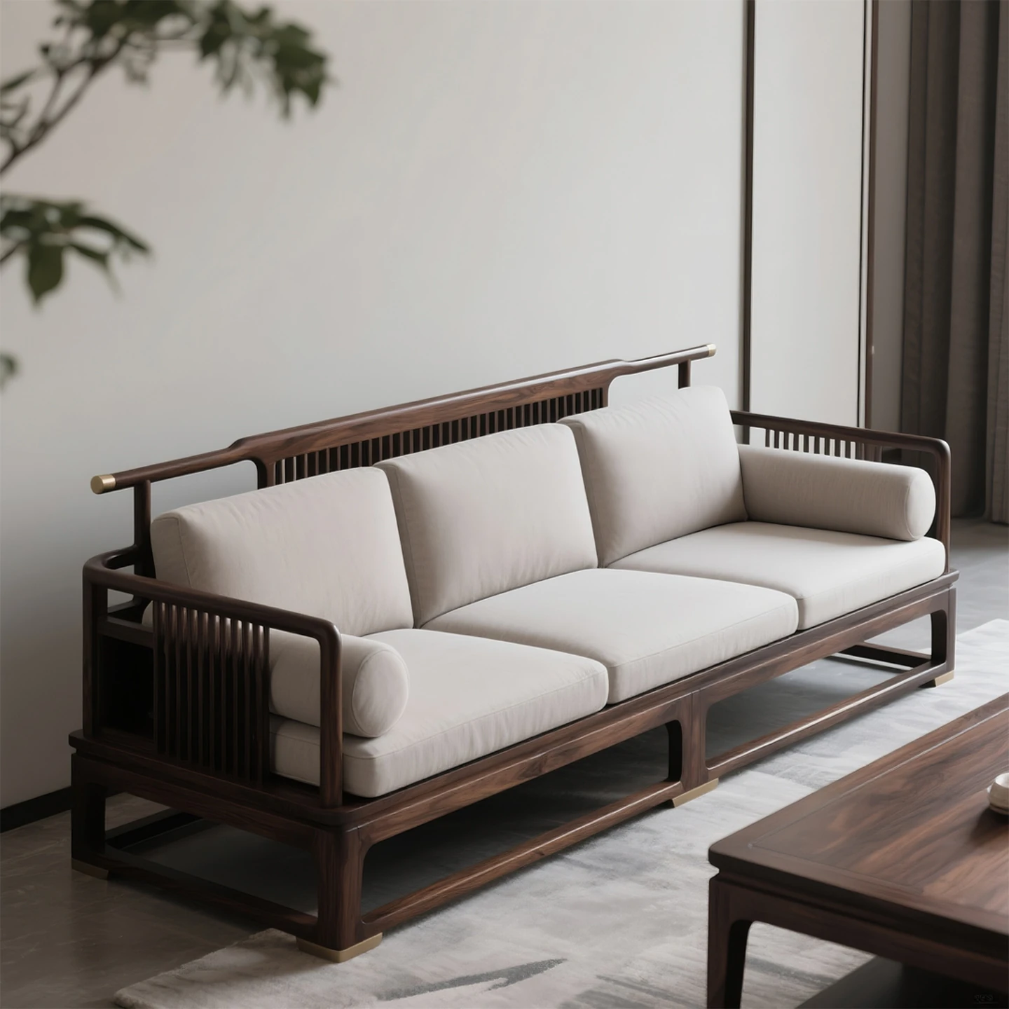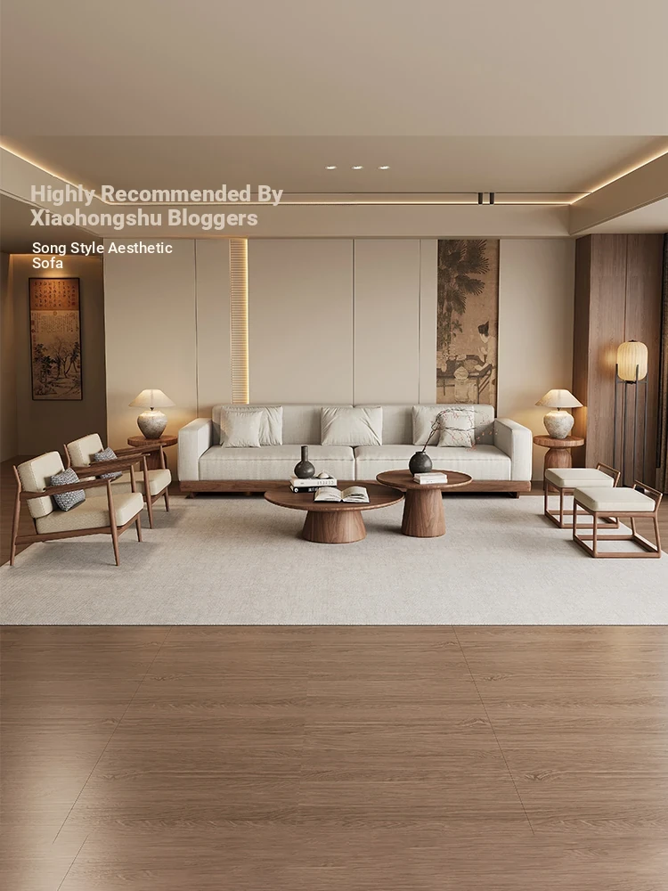 New Chinese Style Solid Wood Sofa – Song Dynasty Aesthetic in South American Walnut, Perfect for Small Living Rooms, Versatile for All Seasons, Ideal for Your Entire Home