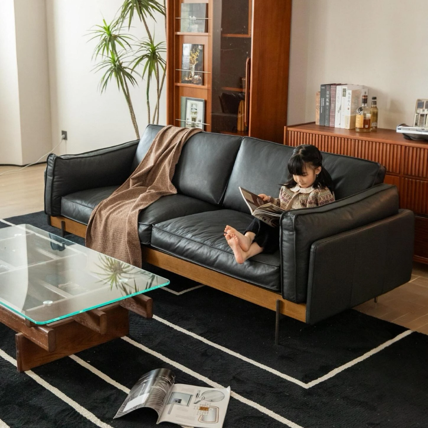 Modern Zen Style Solid North American Black Walnut Wood Sofa Set for Small Living Rooms - Minimalist and Elegant Furniture for Your Contemporary Home