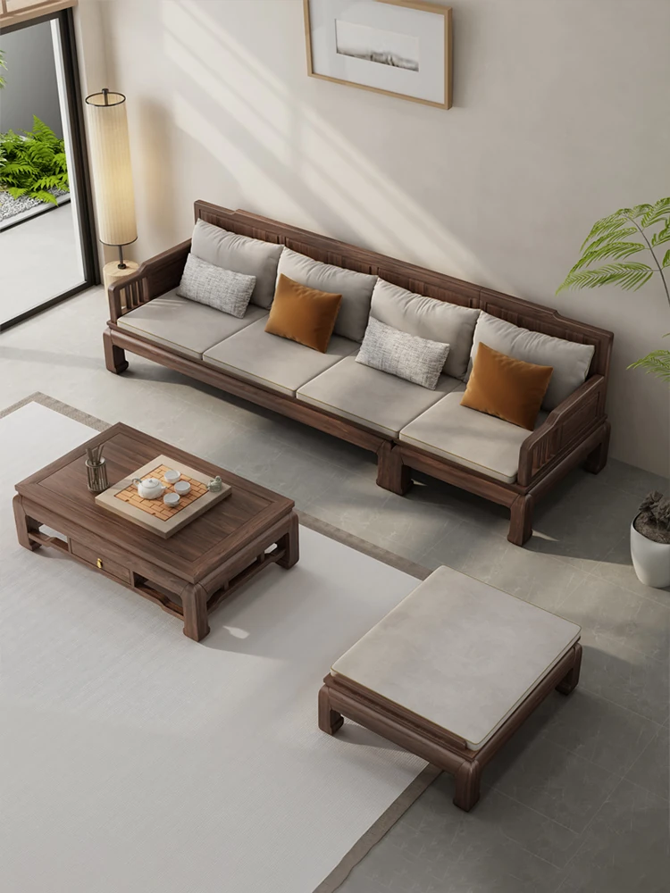 South American Walnut New Chinese Style Solid Wood Sofa - Versatile Song Dynasty Design for Year-Round Use, Perfect for Your Living Room - 2025 Latest Model