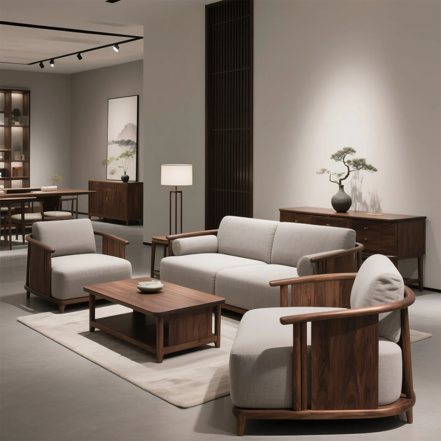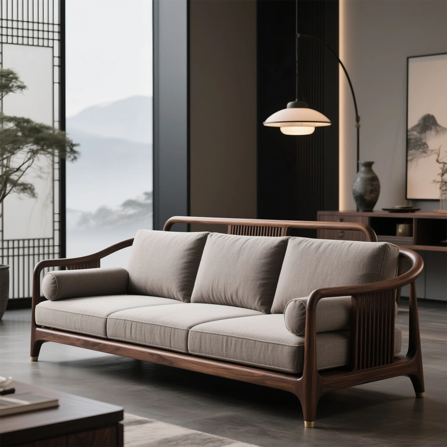 Modern Chinese Style North American Black Walnut Living Room Sofa – Zen-Inspired, Versatile Fabric Sofa for Any Size Home, Crafted from Solid Wood Furniture