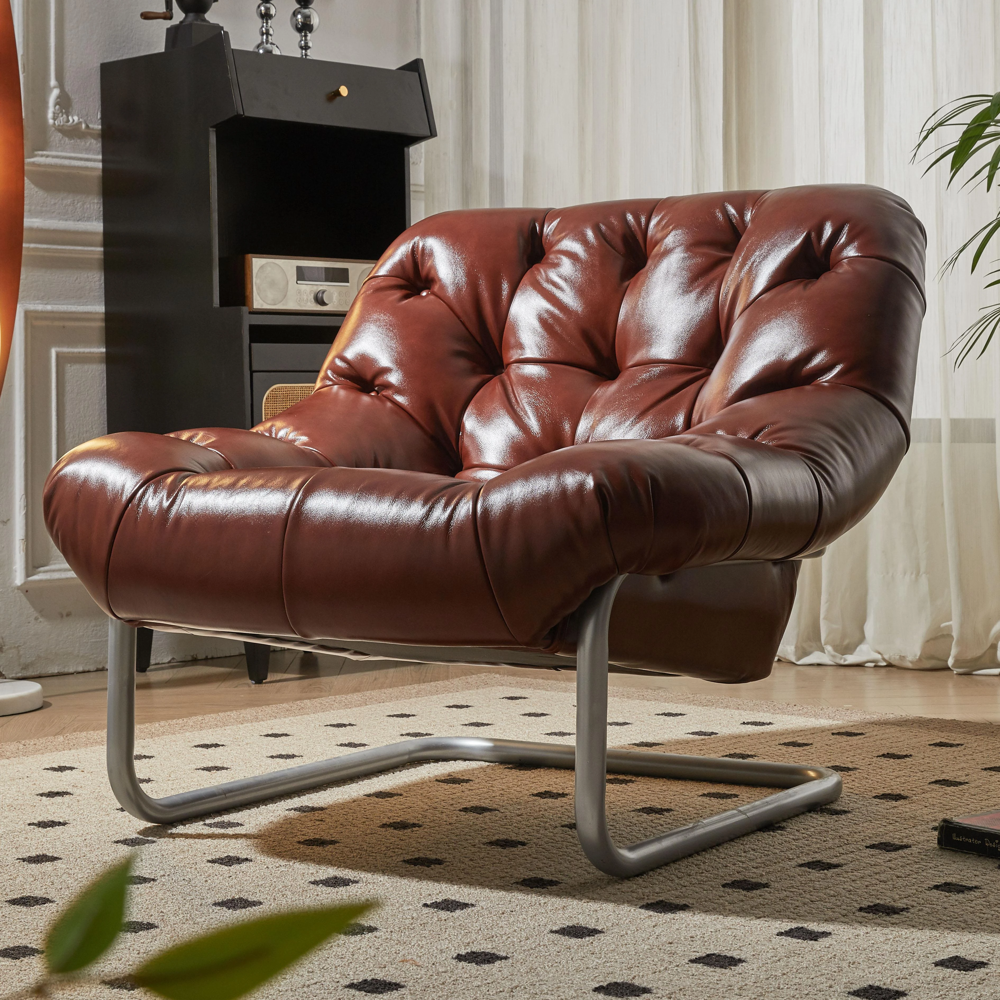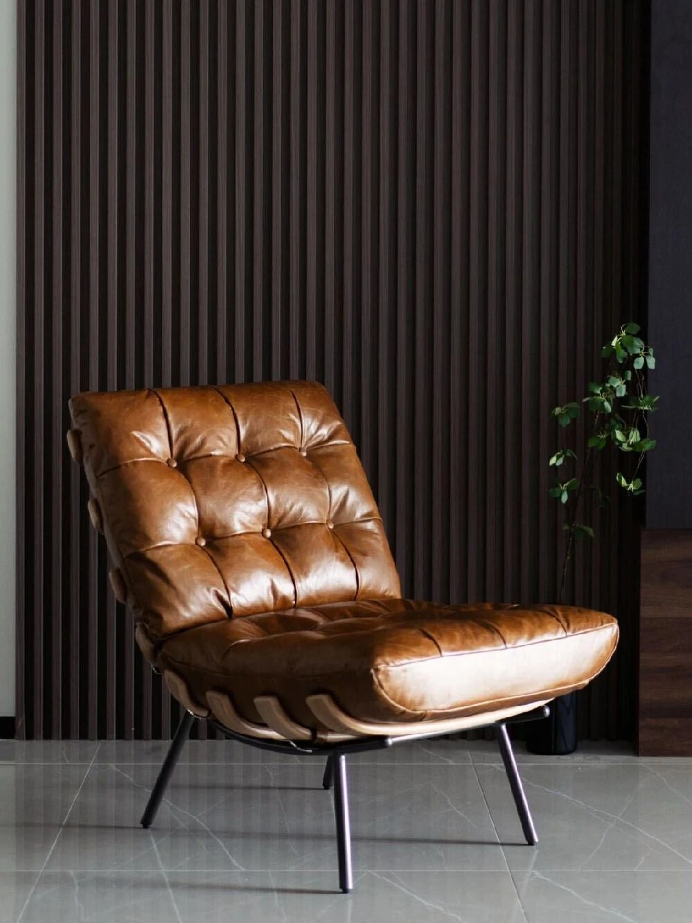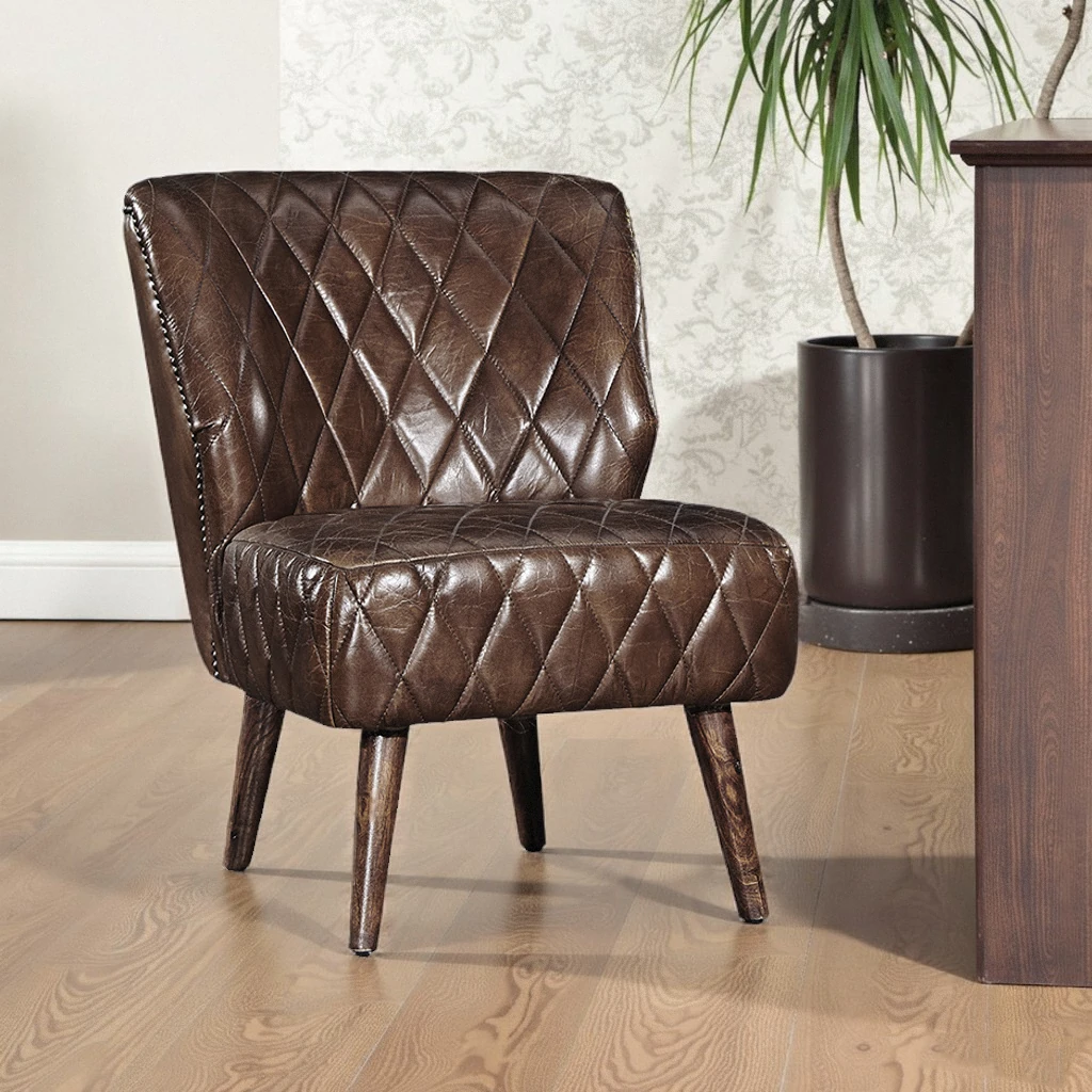 Vintage-Inspired Designer Single Chair with Retro Oil Wax Leather – Stylish Armless Recliner for Home Use, Perfect Blend of Comfort and Artistry
