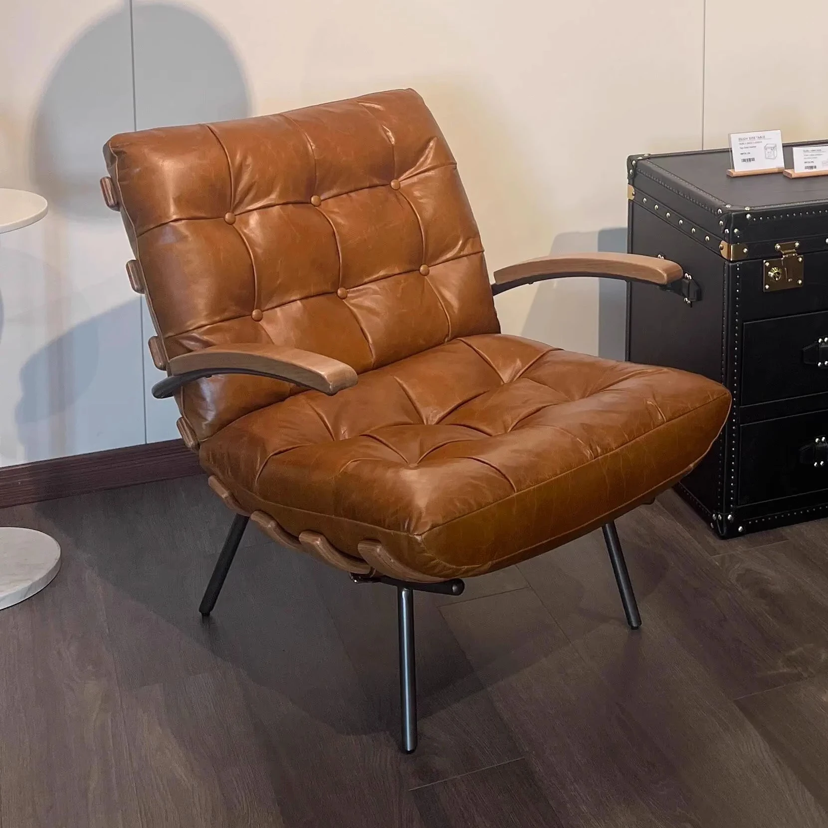 Vintage Retro Waxed Leather Lounge Chair - American Country Style Single Chair, Tiger Chair, Aluminum Leather Single Seat - Perfect for Cozy Living Spaces!