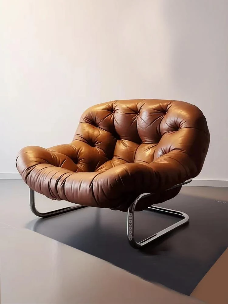 Vintage-Inspired Single Sofa Chair - Designer Retro Waxed Leather Lazy Lounger for Living Room and Balcony - Perfect for Relaxation in Guesthouses and Homes