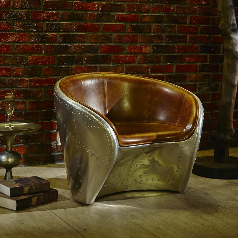 Vintage Retro Waxed Leather Lounge Chair – American Country Aluminum Sofa Chair – Single Egg Swivel Chair for Unique Home Decor