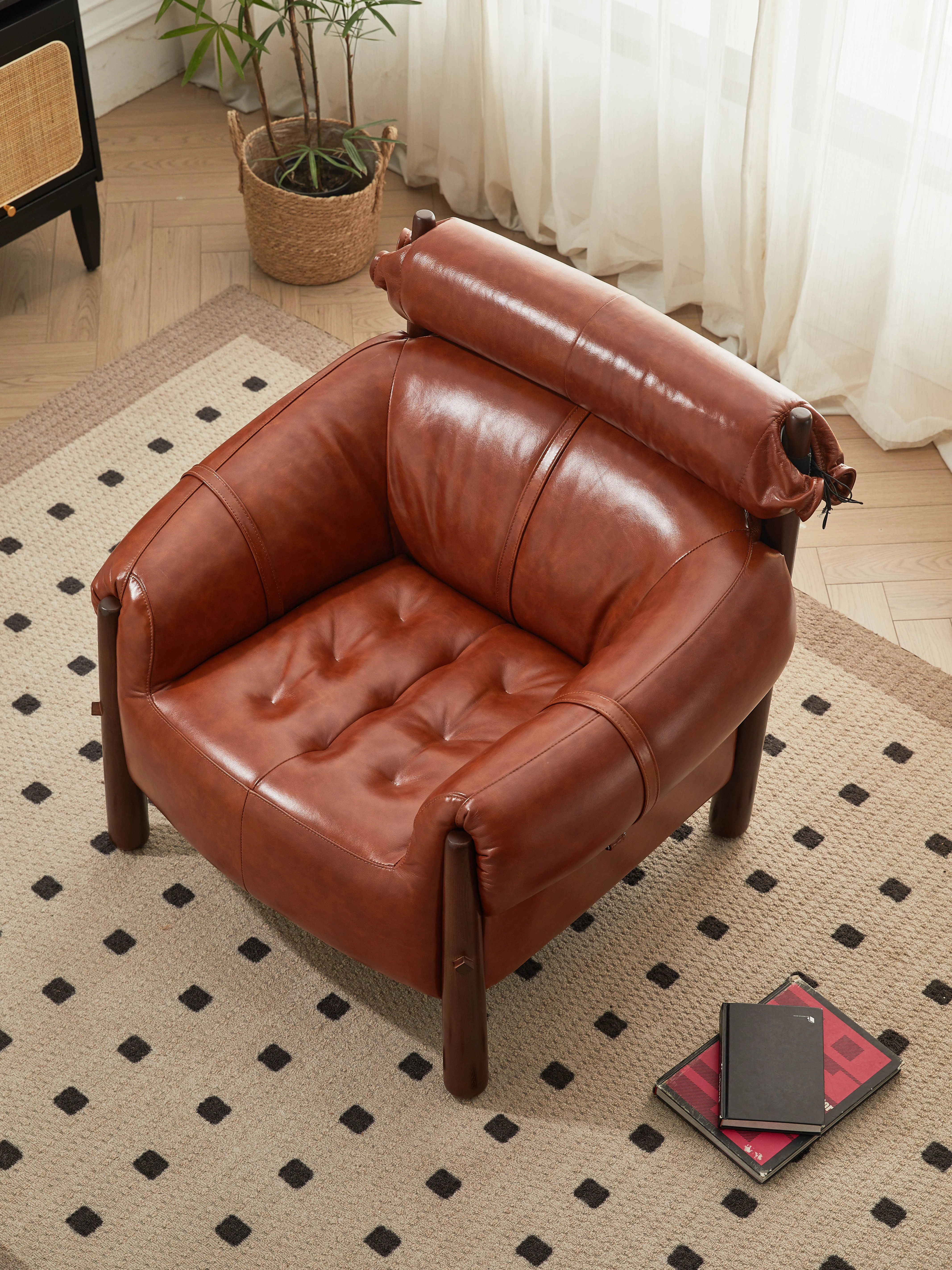 Premium North American Black Walnut Single Sofa Chair - Comfortable Leather Recliner for Living Room - Vintage Style Armchair