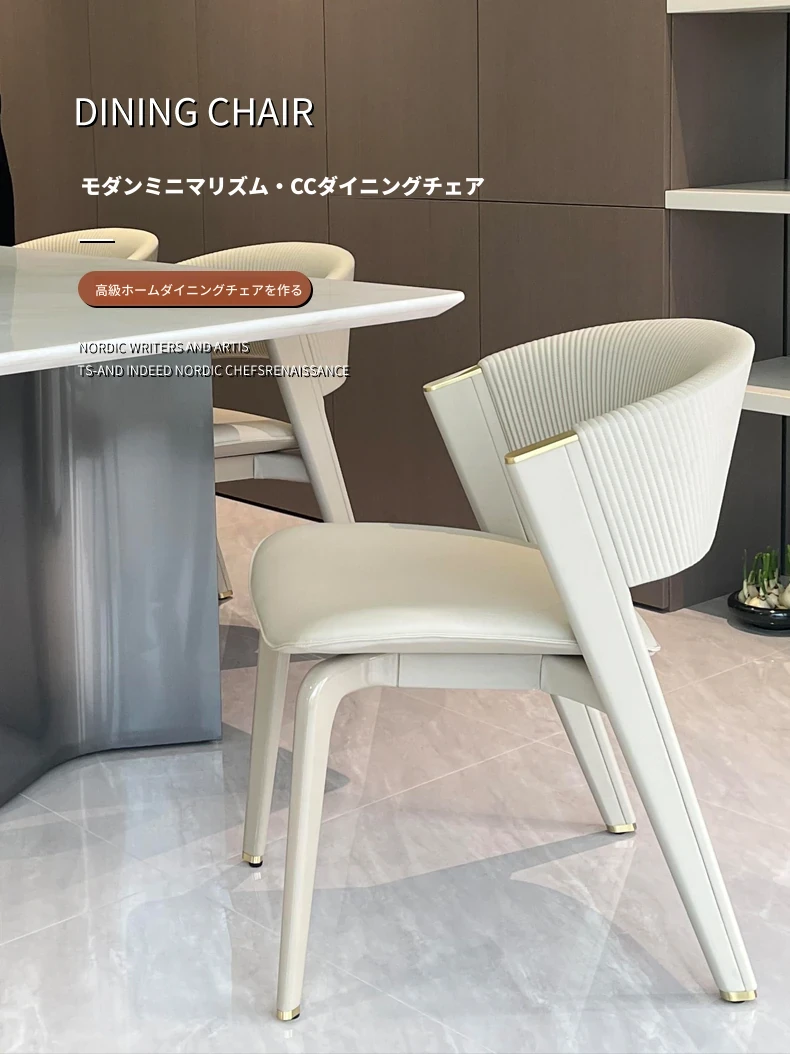 CCダイニングチェア - モダンでラグジュアリーな実木製、焼き付け塗装仕上げ。高級感あふれるデザインは、別荘やカフェにもぴったり!快適なアームレスト付きで、食事の時間をより特別に。
