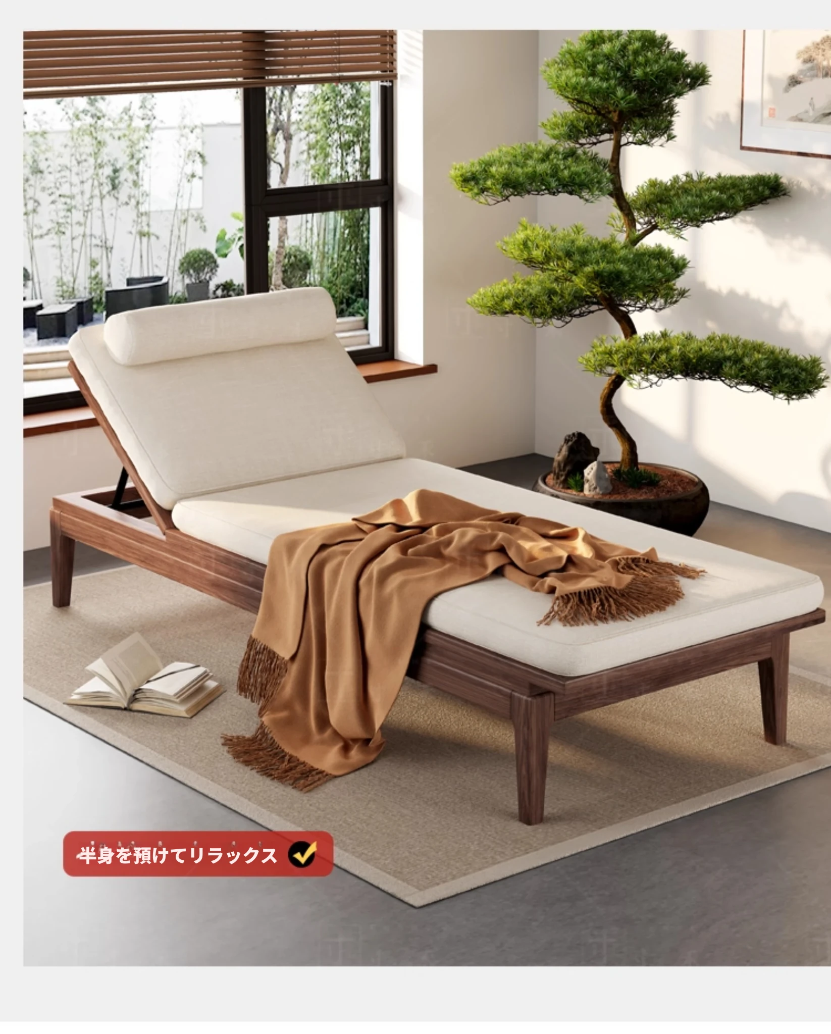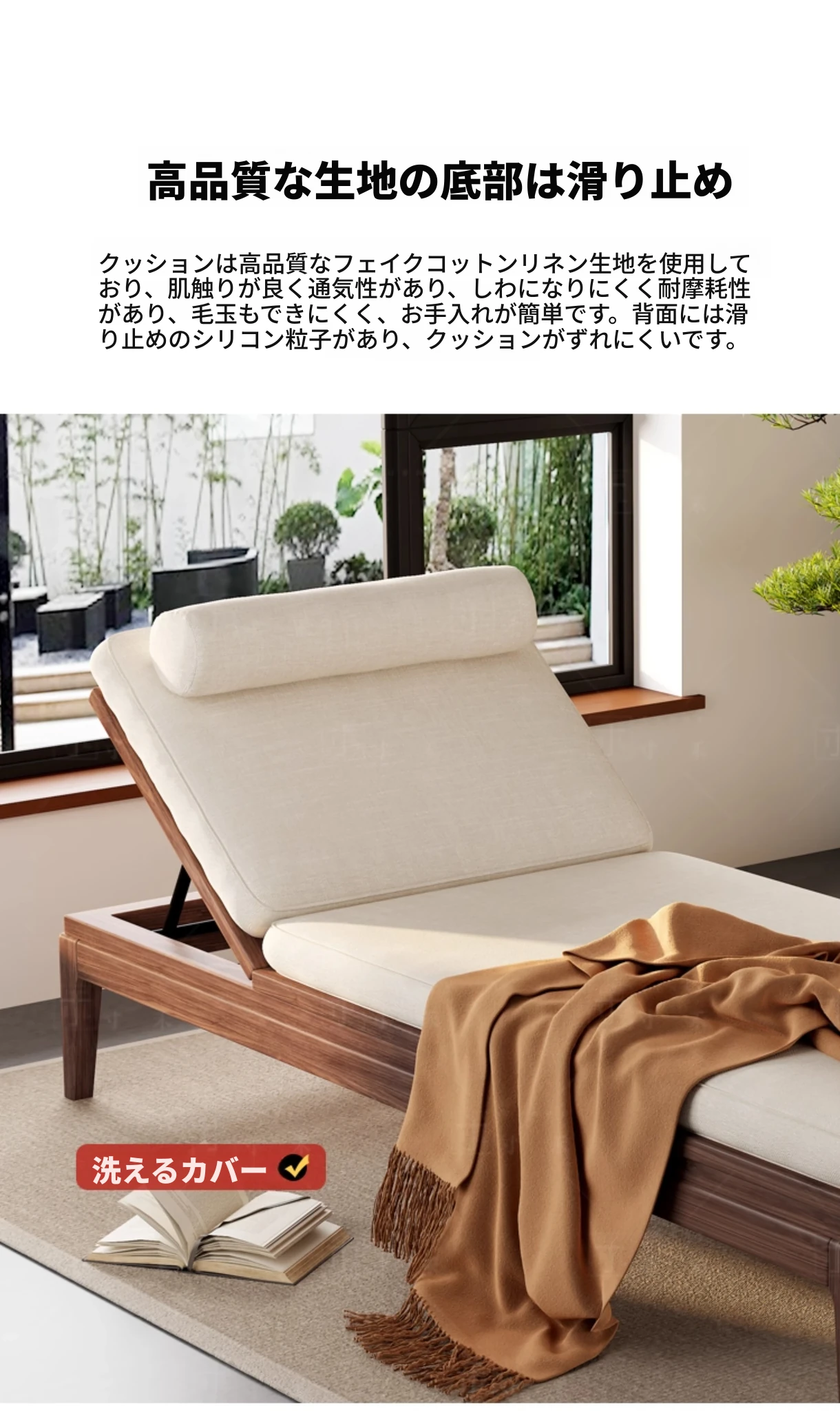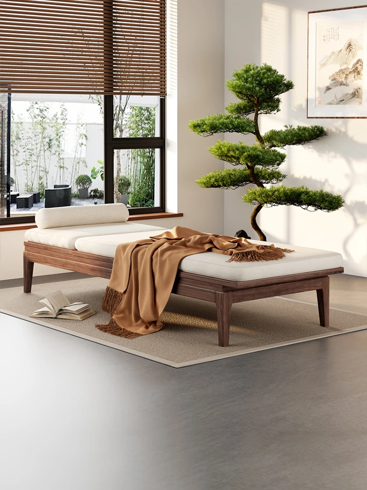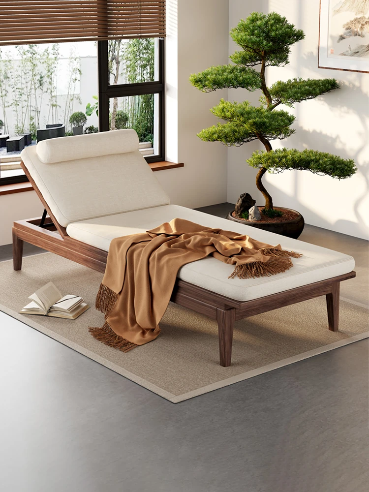 南米のウォールナット材使用!新中式デザインの折りたたみ式無垢材カウチソファ。リラックスできる寝椅子で、寝室やリビングにぴったりの貴婦人のような優雅さを演出します。