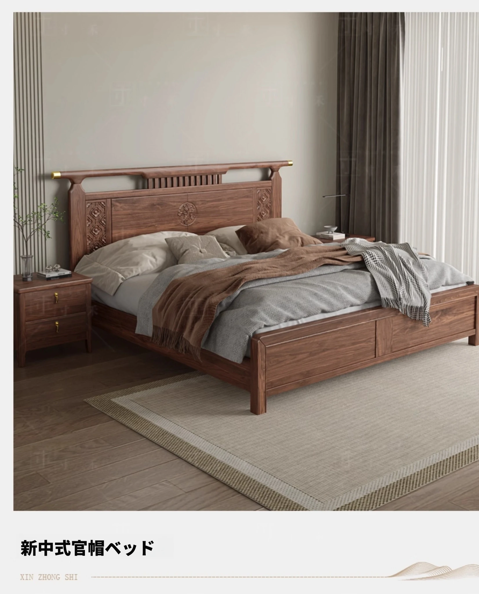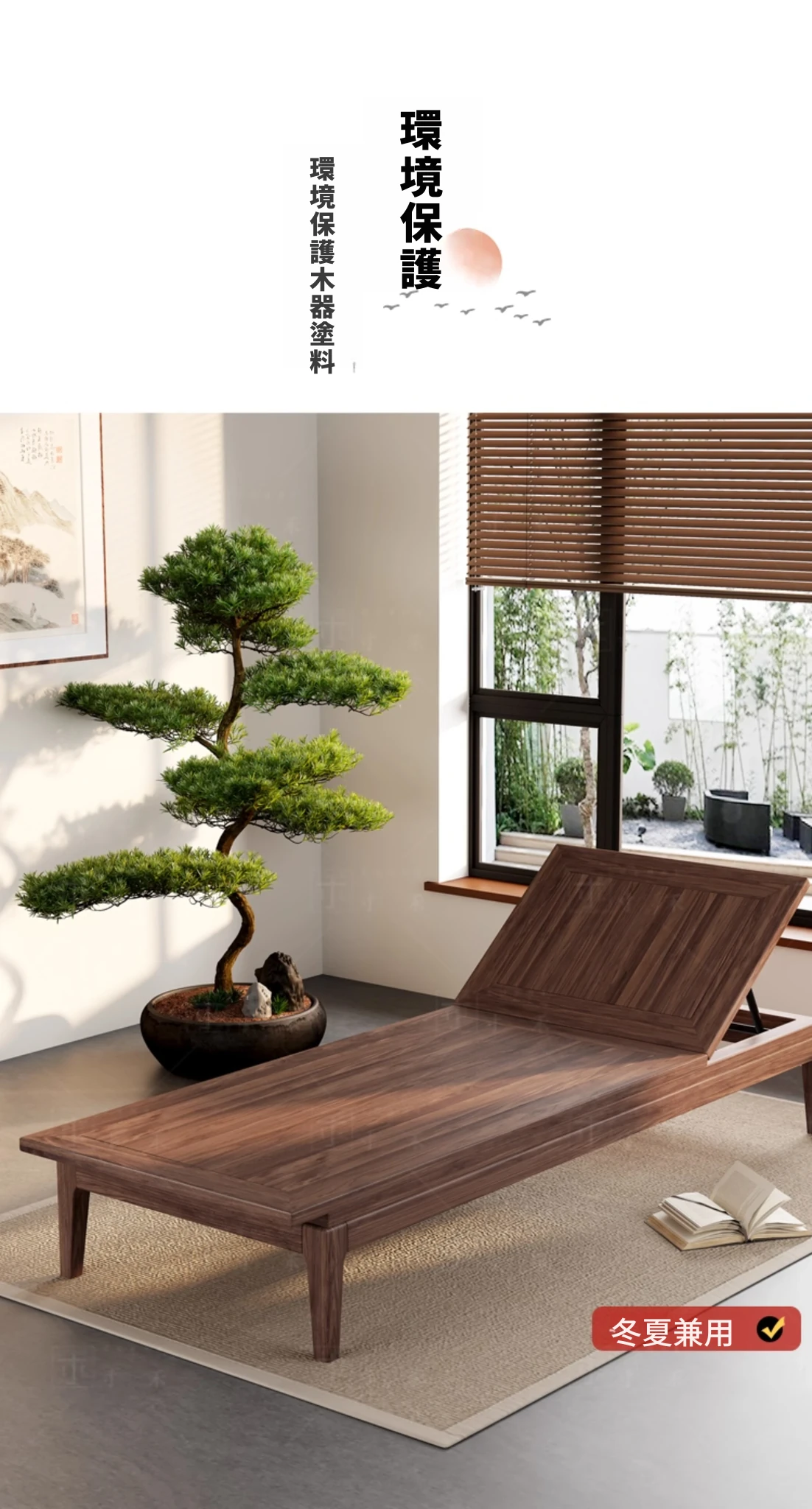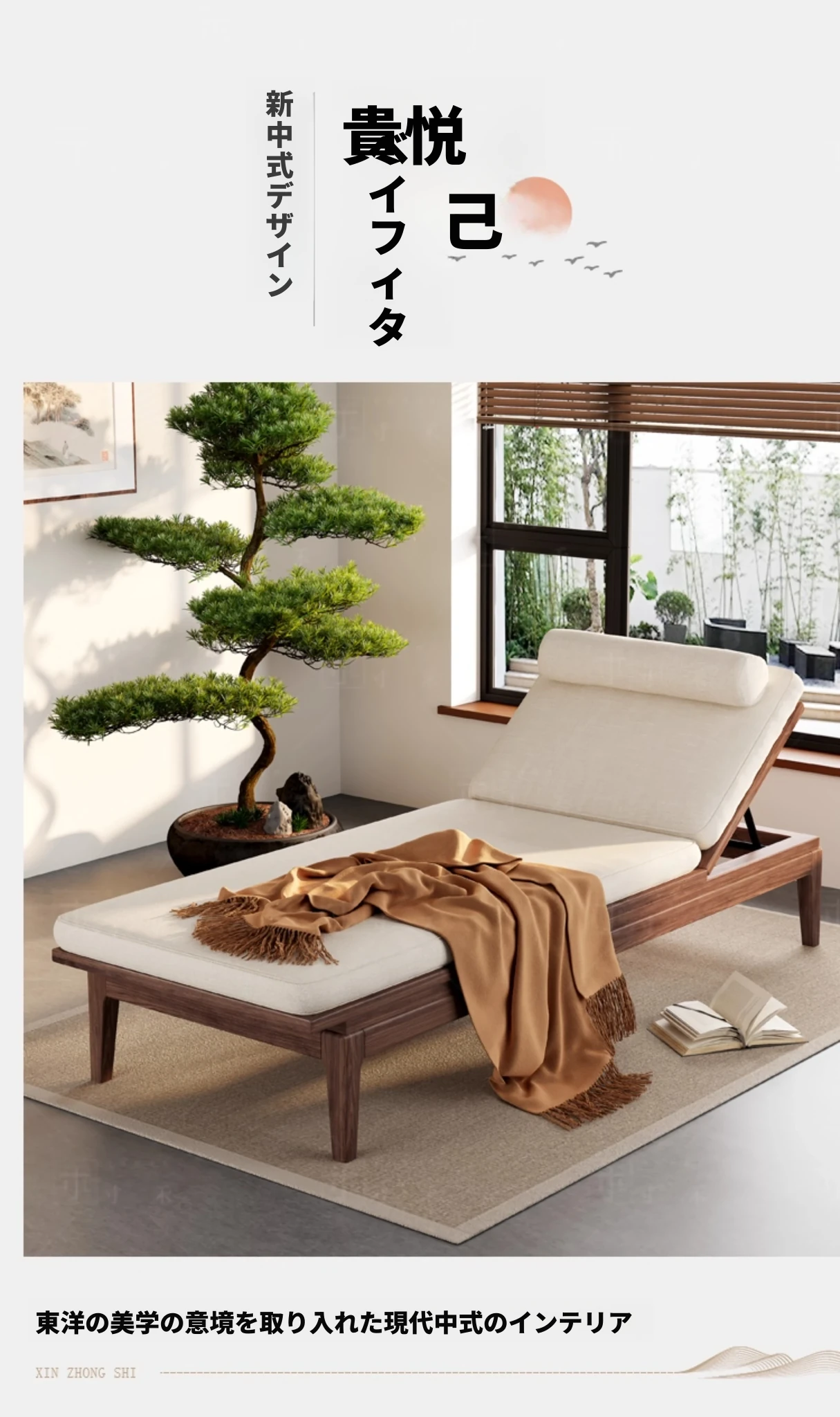 南米のウォールナット材使用!新中式デザインの折りたたみ式無垢材カウチソファ。リラックスできる寝椅子で、寝室やリビングにぴったりの貴婦人のような優雅さを演出します。