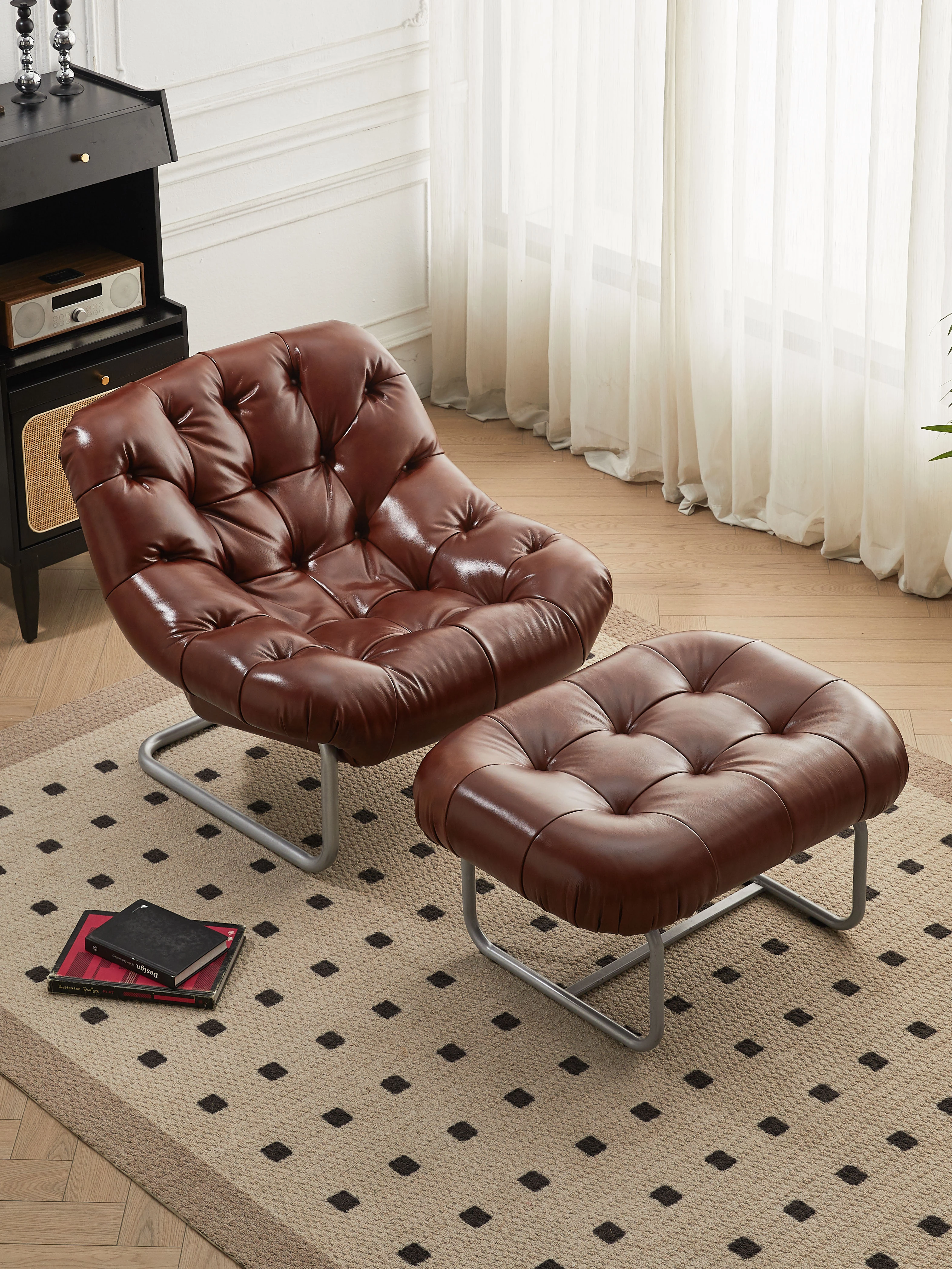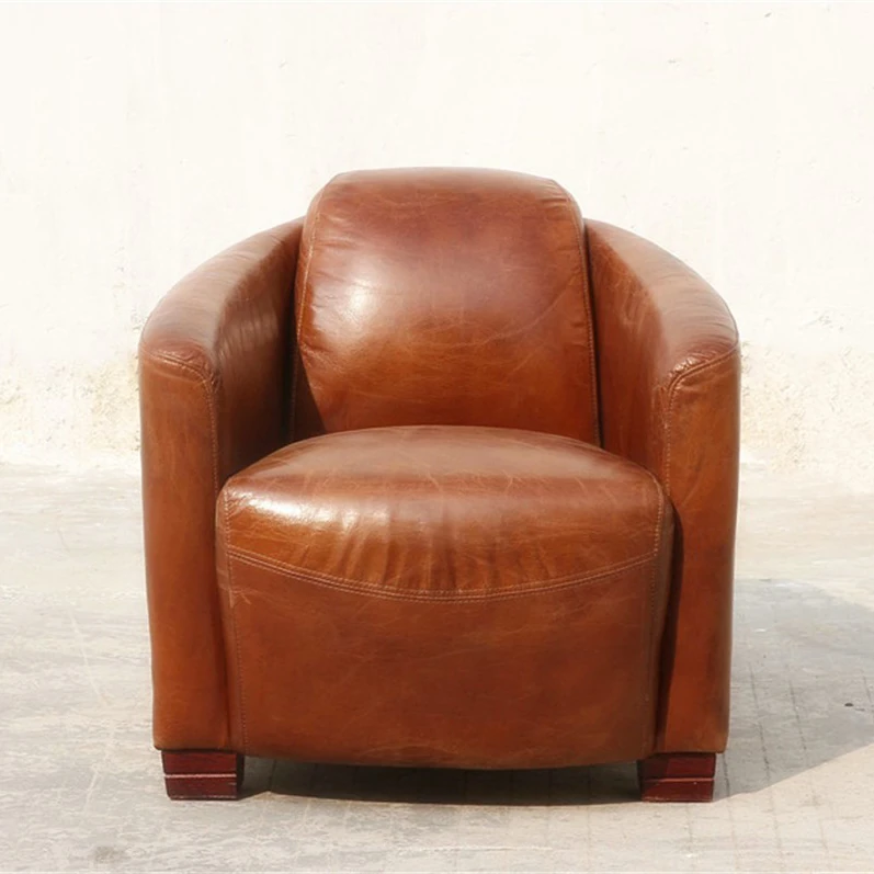 レトロなオイルワックスレザーの一人掛けソファ、居間や自宅に最適なデザインアート椅子。クリエイティブなヴィラ空間や商談にぴったりのスタイリッシュなアイテム!