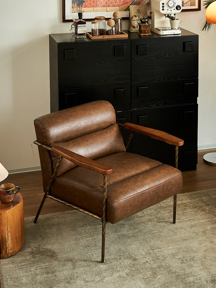 ヴィンテージ風の無垢鉄鍛造カジュアルチェア、無垢材の一人掛けソファ、レトロオイルワックスレザー仕上げのデザイナーアームチェアで、スタイリッシュな空間を演出します。