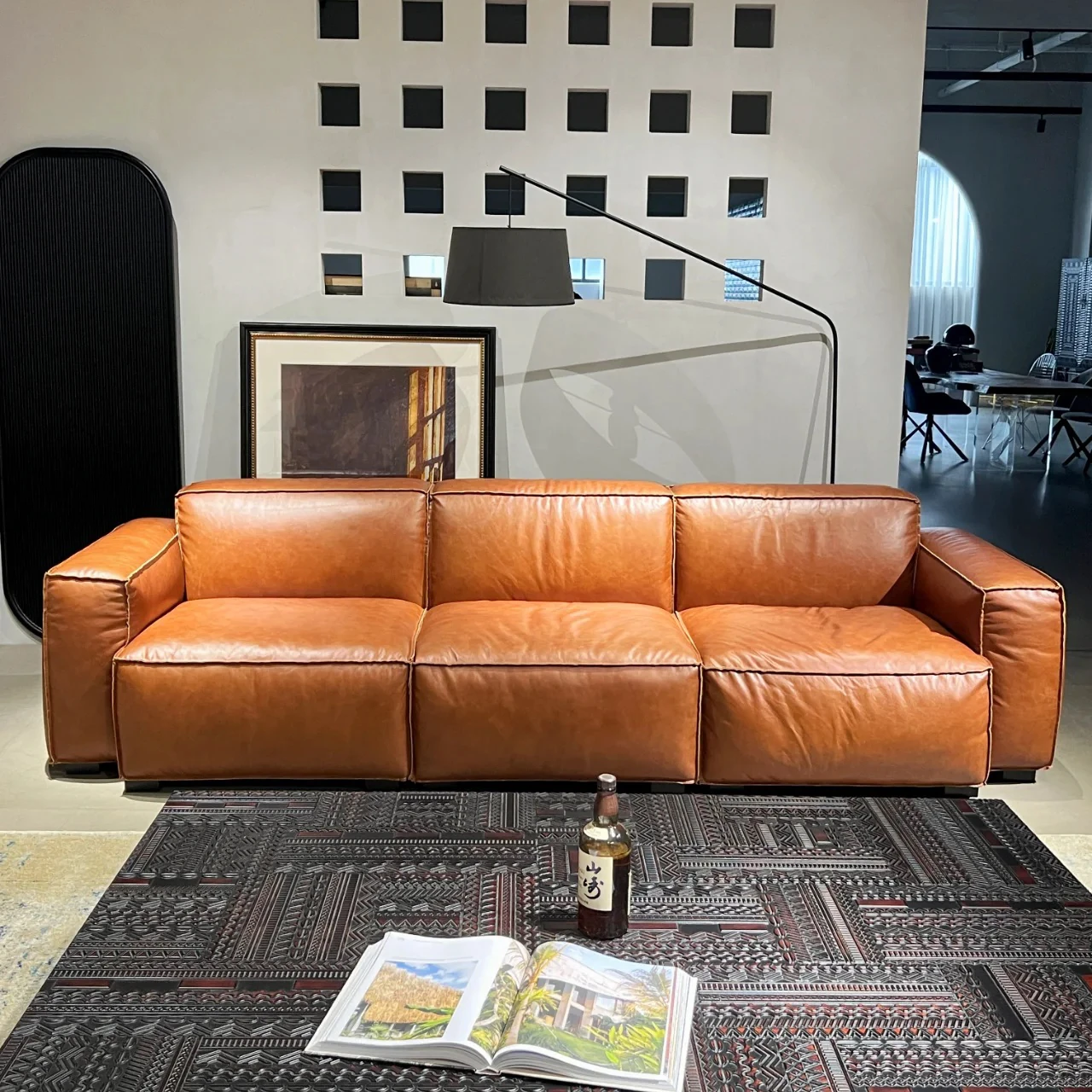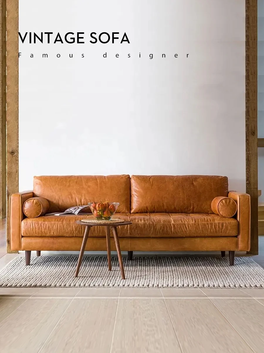 2025年新作!中古風ハグソファー - ヴィンテージオイルワックスレザー使用、リビングにぴったりな直排三人掛けソファ、別荘にも最適な魅力的なデザイン!
