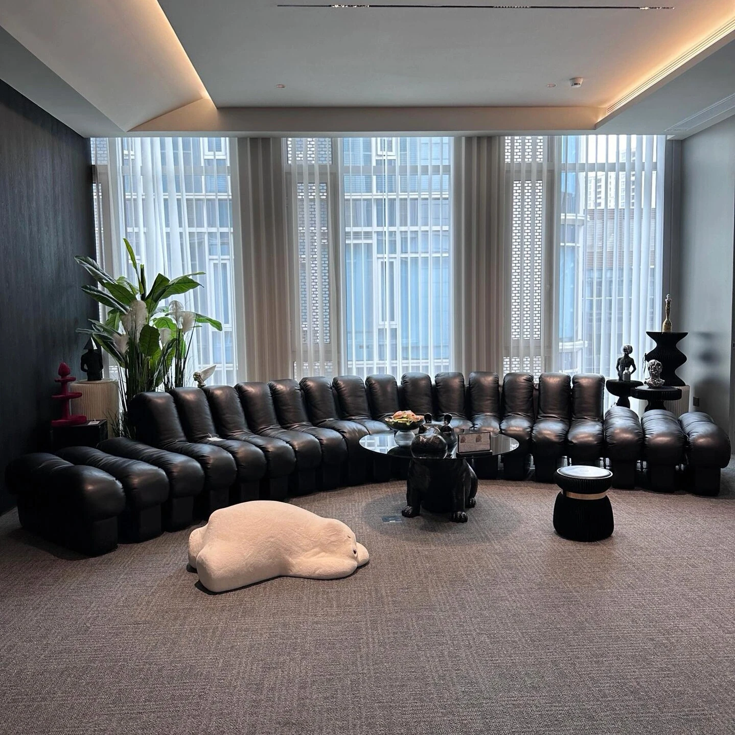 ヴィンテージ風オイルレザー ブラックスネークデザイン ソファ リビングルーム用 アーチ型モジュラーソファ フレンチクラシック 高級別荘向け ソファ - おしゃれで洗練された空間を演出します!