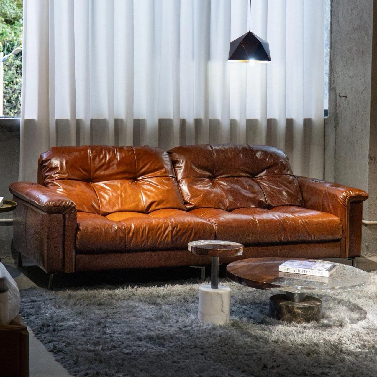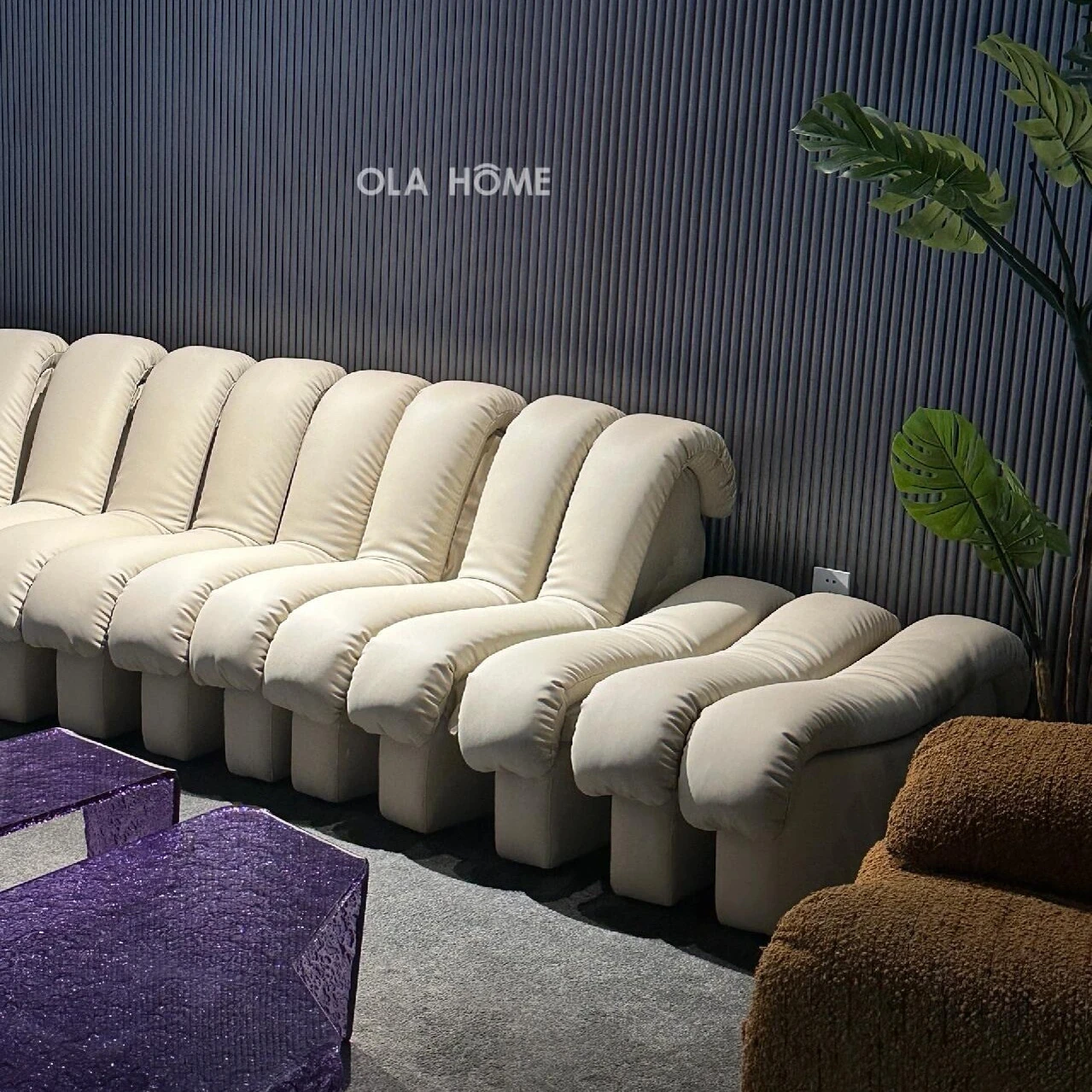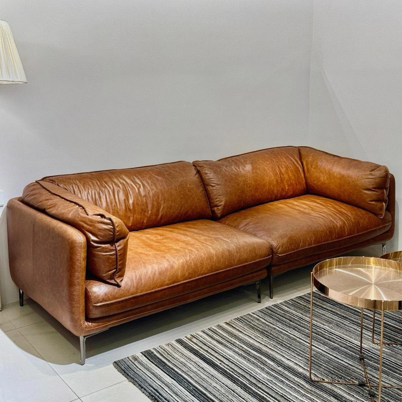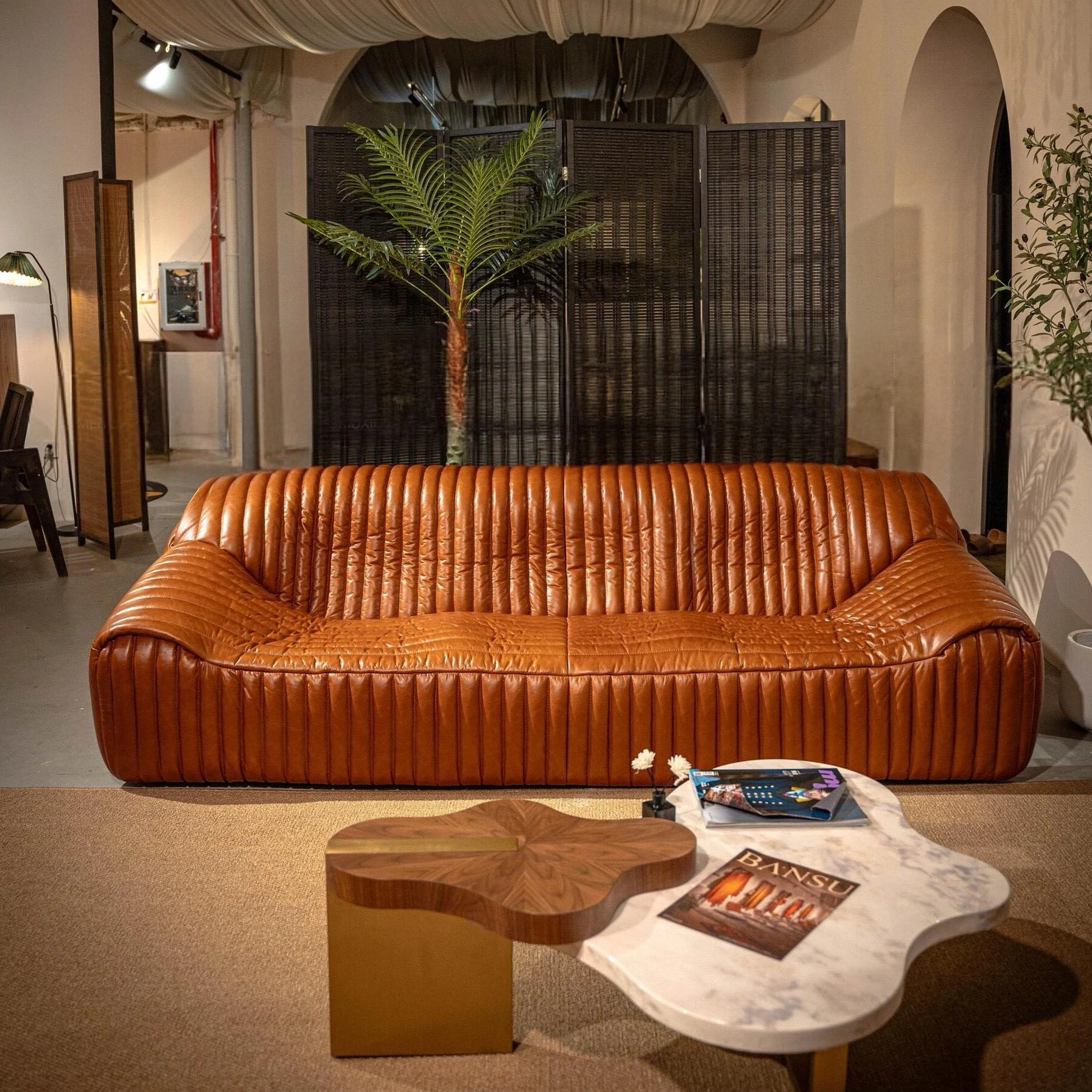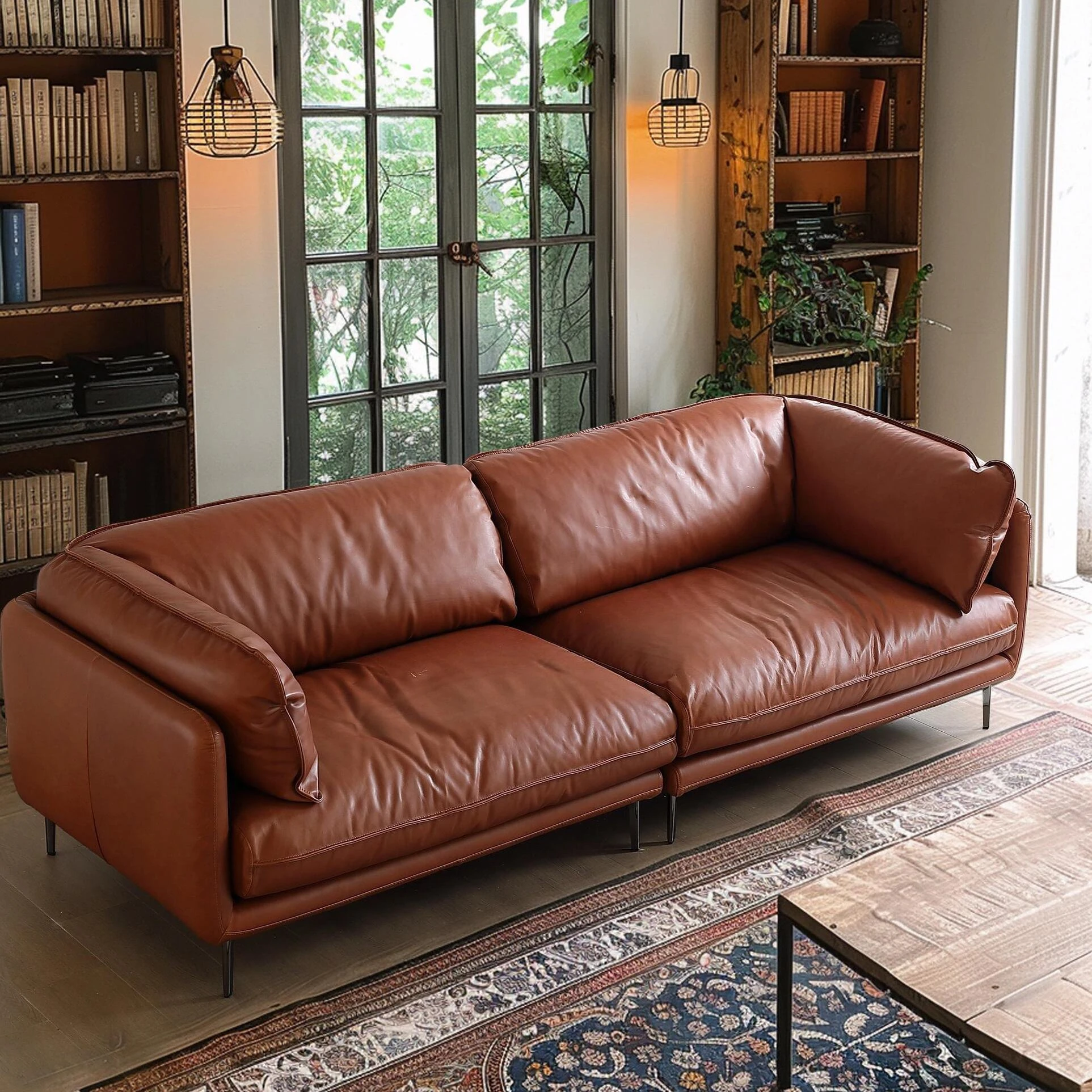 ヴィンテージ風本革ヘビ型ソファー|リビングにぴったりのアーチ型モジュラーソファ|フレンチスタイルで洗練された空間を演出|人気のセレブ同様のスタイルをお楽しみください!
