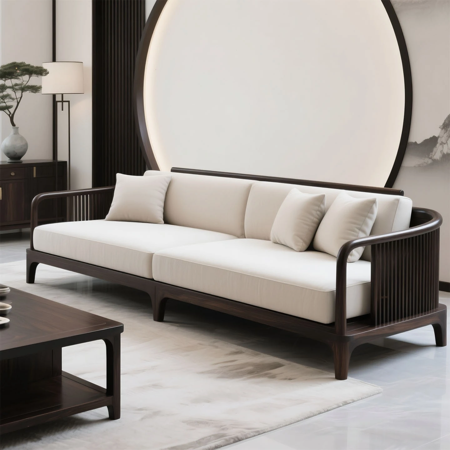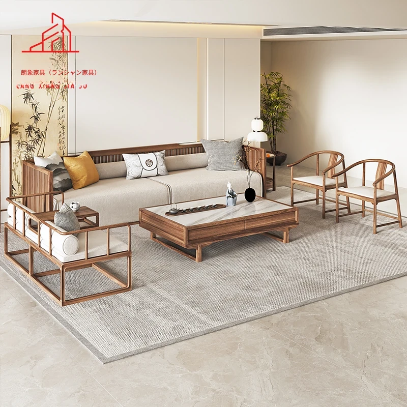 新中式ウッディサンゴウソファー|宋風美学のモダンなデザイン|シンプルで禅の心を感じる贅沢な別荘用リビング家具セット