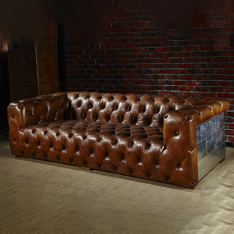 アメリカンスタイル本革ソファ|高級感漂うヴィンテージ風|オイルワックス仕上げの本牛革|レトロな雰囲気の喫煙バーソファ|おしゃれなリビングにぴったり!