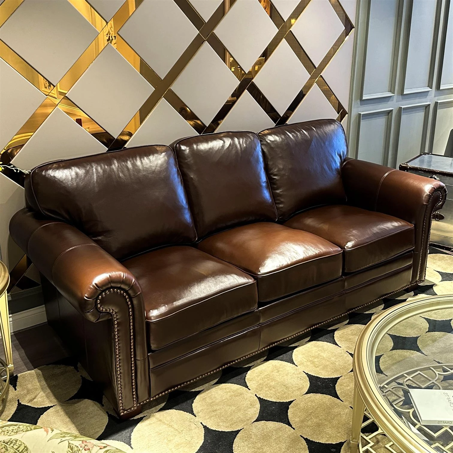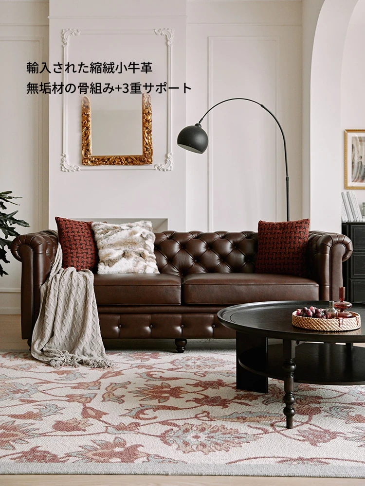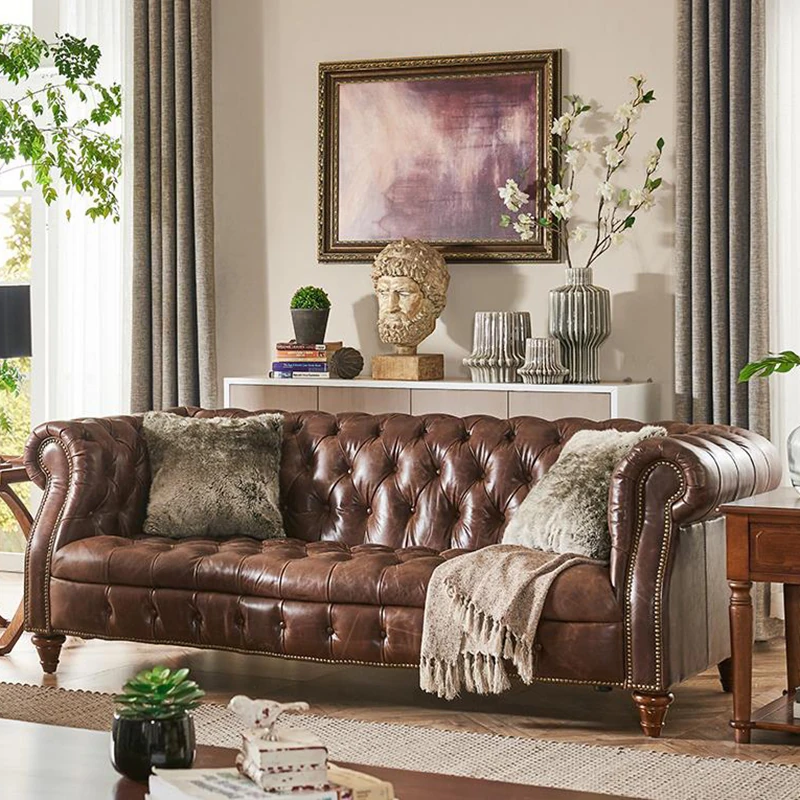 フレンチアンティーク風オイルレザーソファー|アメリカンヴィンテージスタイル|本革ウイスキーシガーバー|別荘・ユニットに最適な家具!優雅な雰囲気を演出し、特別なひとときを提供します。