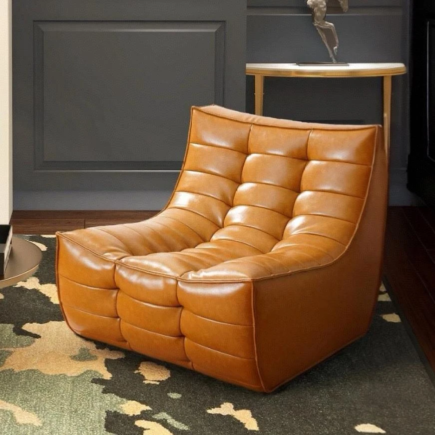 北欧モダンレトロキャラメル色ワッフルソファー|デザイナーによる一人掛けソファ|リビングに最適なリラックスチェア【心地よいひとときを】