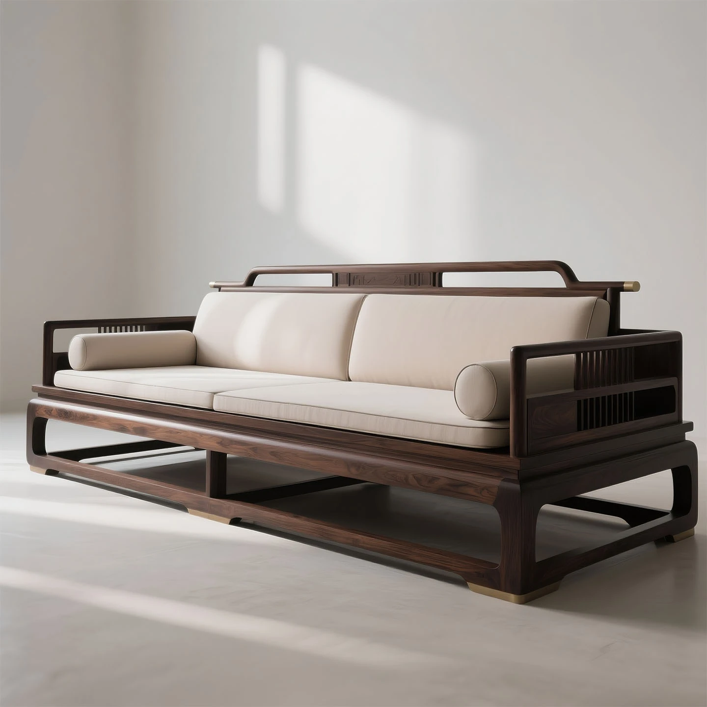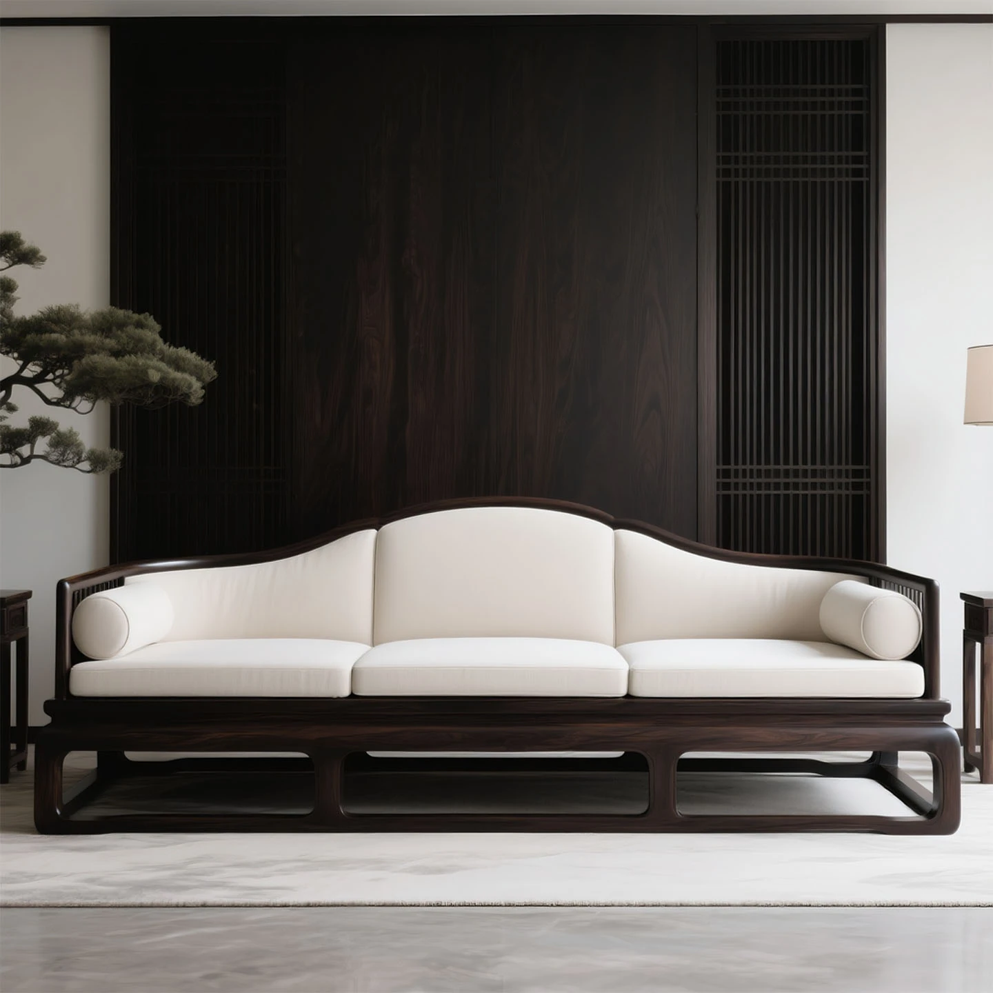 新中式宋風美学の無垢材ソファー - コットンリネンの禅の雰囲気を纏った高級ホテル・ヴィラ用リビング家具、モダンでシンプルなデザイン。