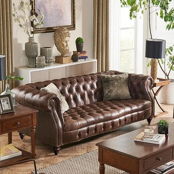 ヴィンテージ風ソファ アメリカンラグジュアリー クラシック本革3人用ソファ レトロオイルワックスレザー ウィスキーシガーバーにぴったり!おしゃれで快適な空間を演出します。