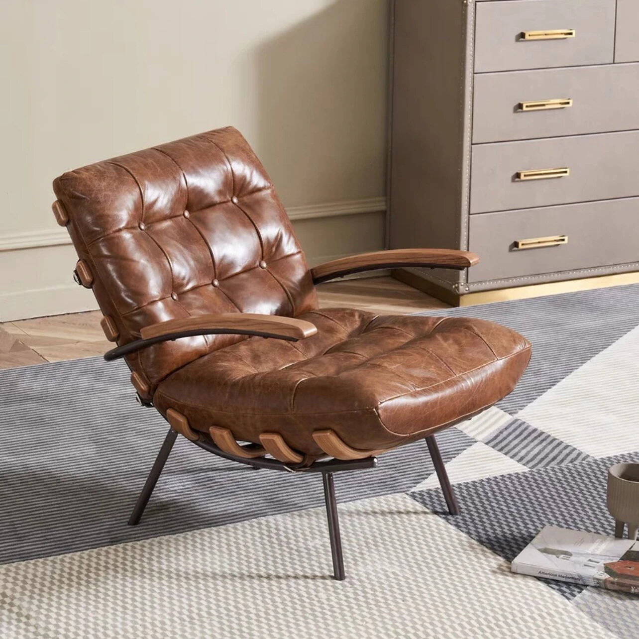ヴィンテージ風オイルワックスレザーのリラックスチェア|アメリカンカントリースタイルのソファチェア|一人掛け|虎のような存在感|アルミ製のスタイリッシュな単身用チェア!心地よい座り心地で、あなたのリビングを特別に演出します。