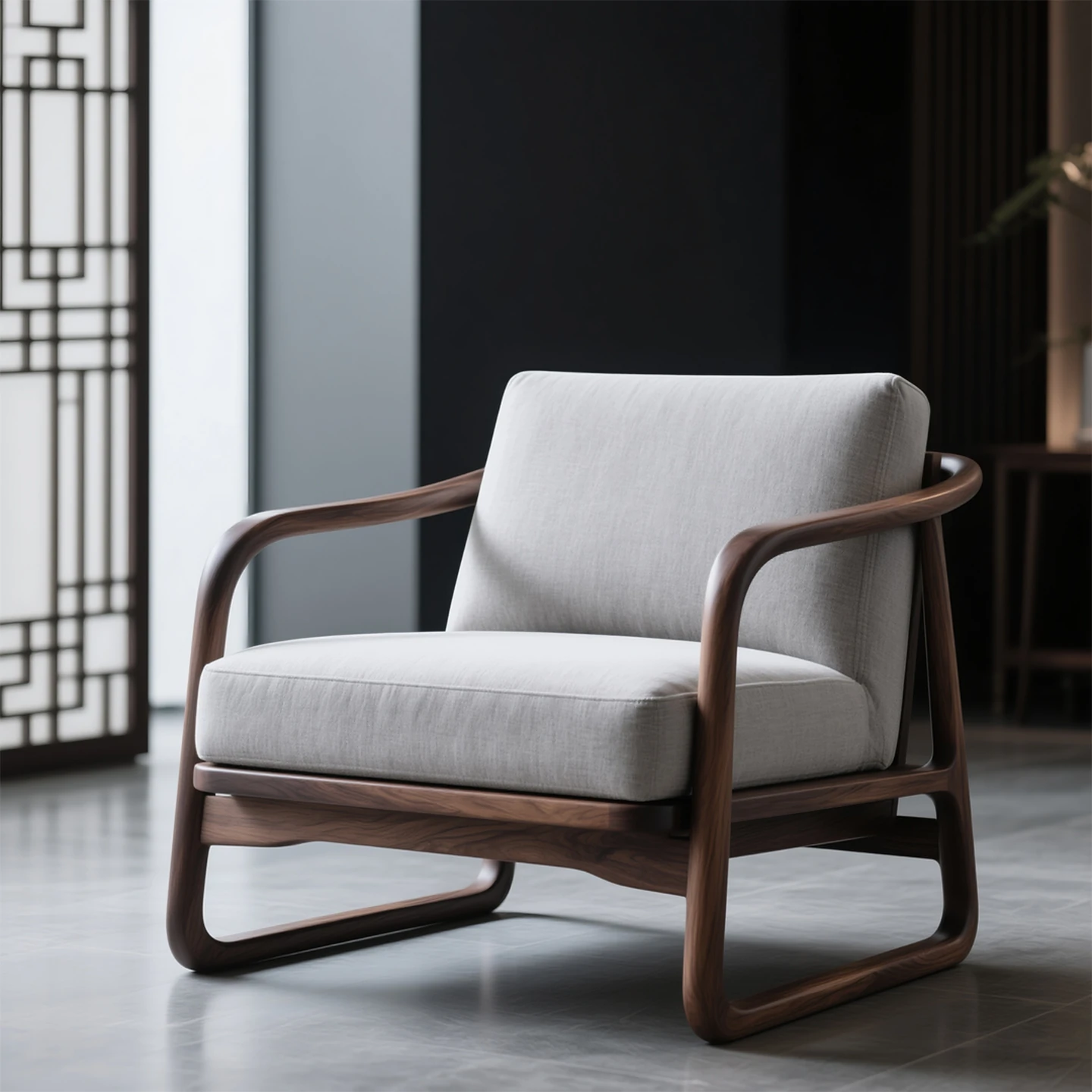 新中式デザインのブラックウォールナット製ソファチェア - モダンでシンプルなスタイルのリビング用リラックスチェア、書斎にも最適な一人掛け椅子。上質な素材で居心地の良い空間を演出します。