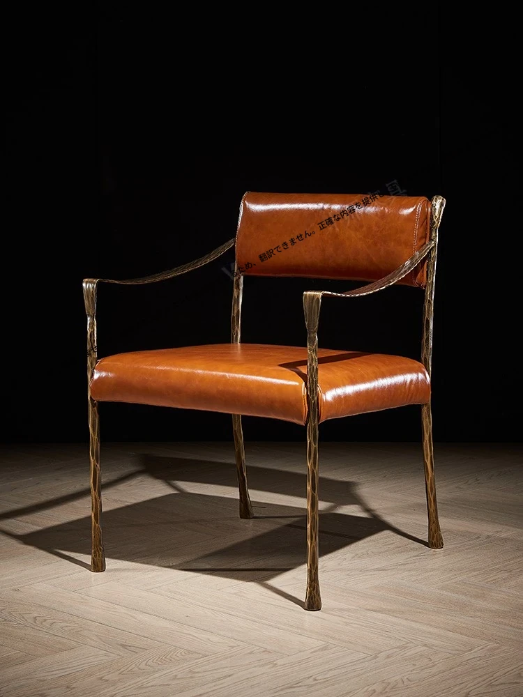 フランス風ヴィンテージハイエンドオイルワックスレザーアイアンメタルアームチェア、堅牢な鍛造アイアン製のシングルソファ、リラックスできる完璧な一脚!